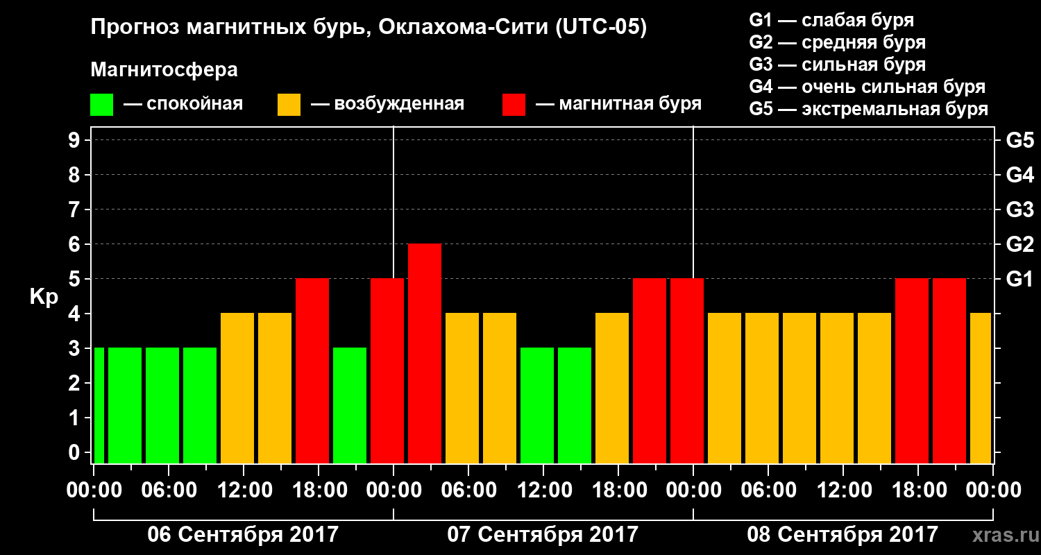 Прогноз магнитных бурь Оклахома-Сити — 6 сентября 2017 года
