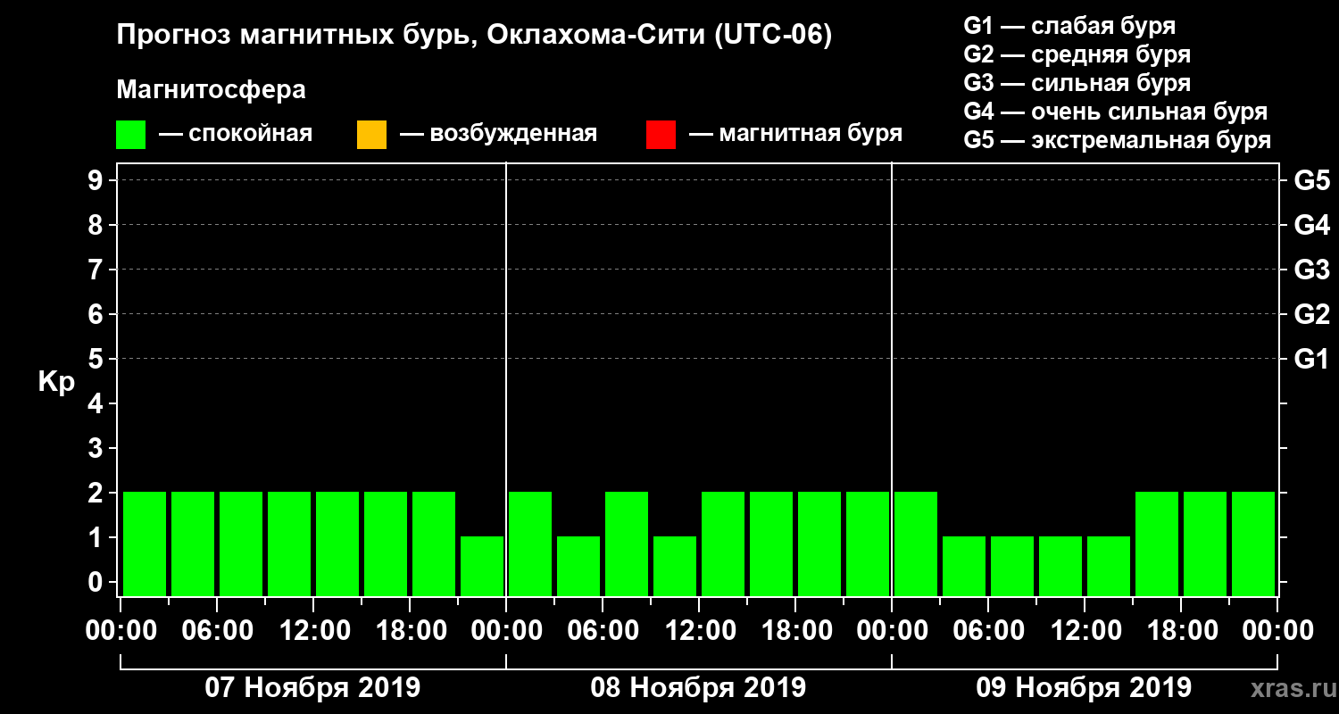 Прогноз магнитных бурь Оклахома-Сити — 7 ноября 2019 года