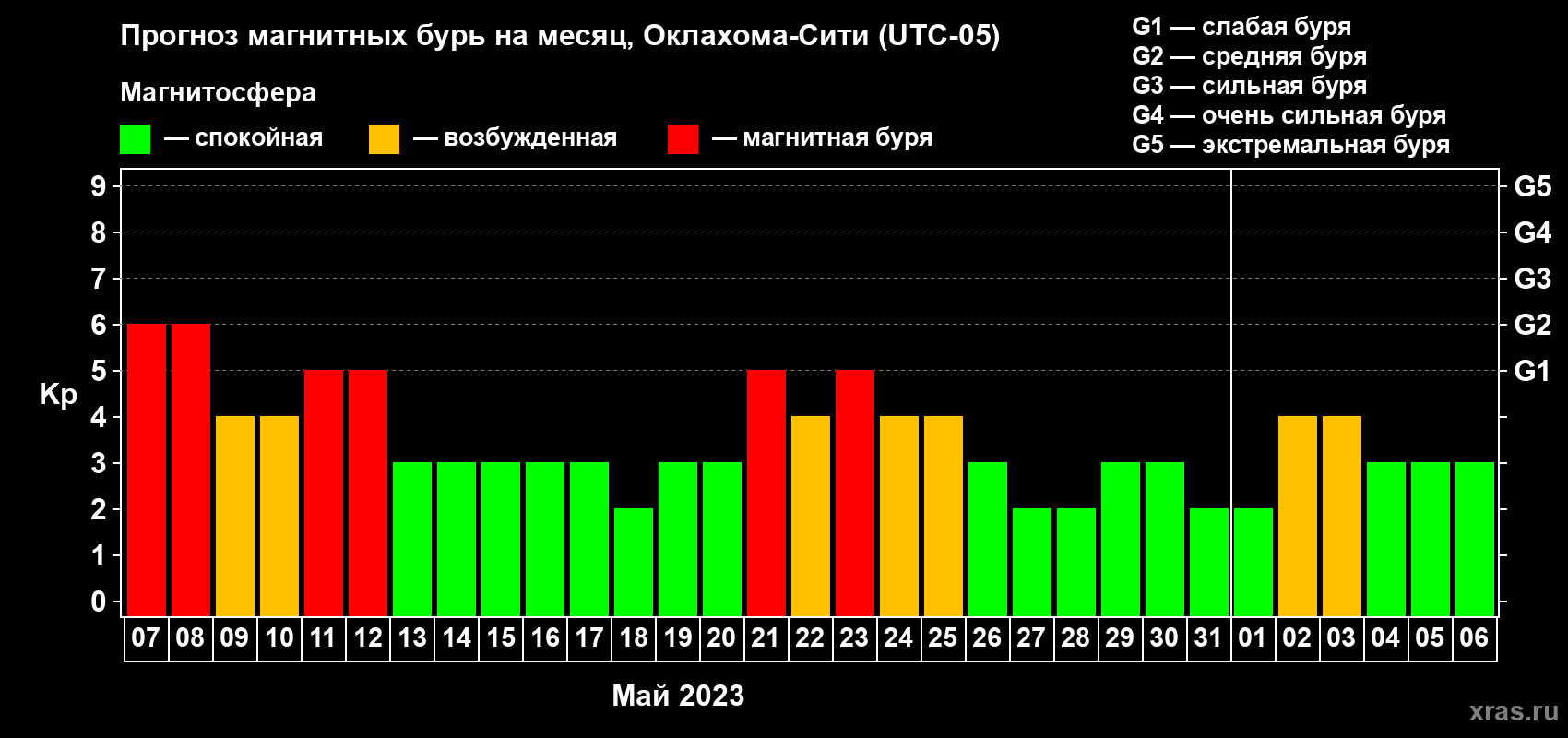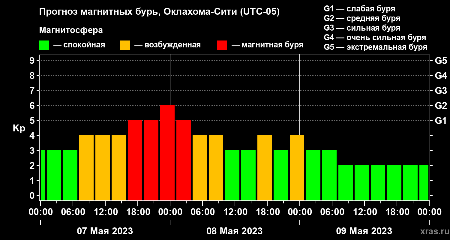 Прогноз магнитных бурь Оклахома-Сити на 7 мая 2023 года