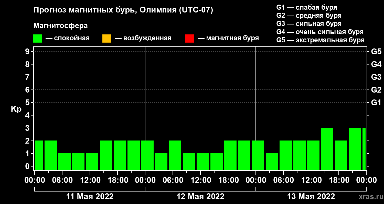 Прогноз магнитных бурь в Олимпии — 11 мая 2022 года