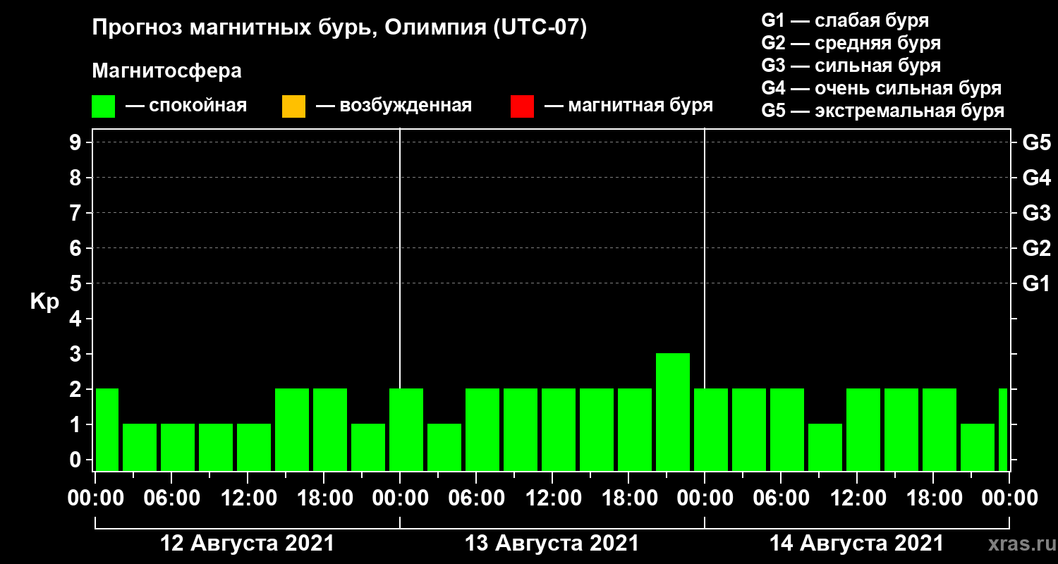 Прогноз магнитных бурь в Олимпии на 12 августа 2021 года