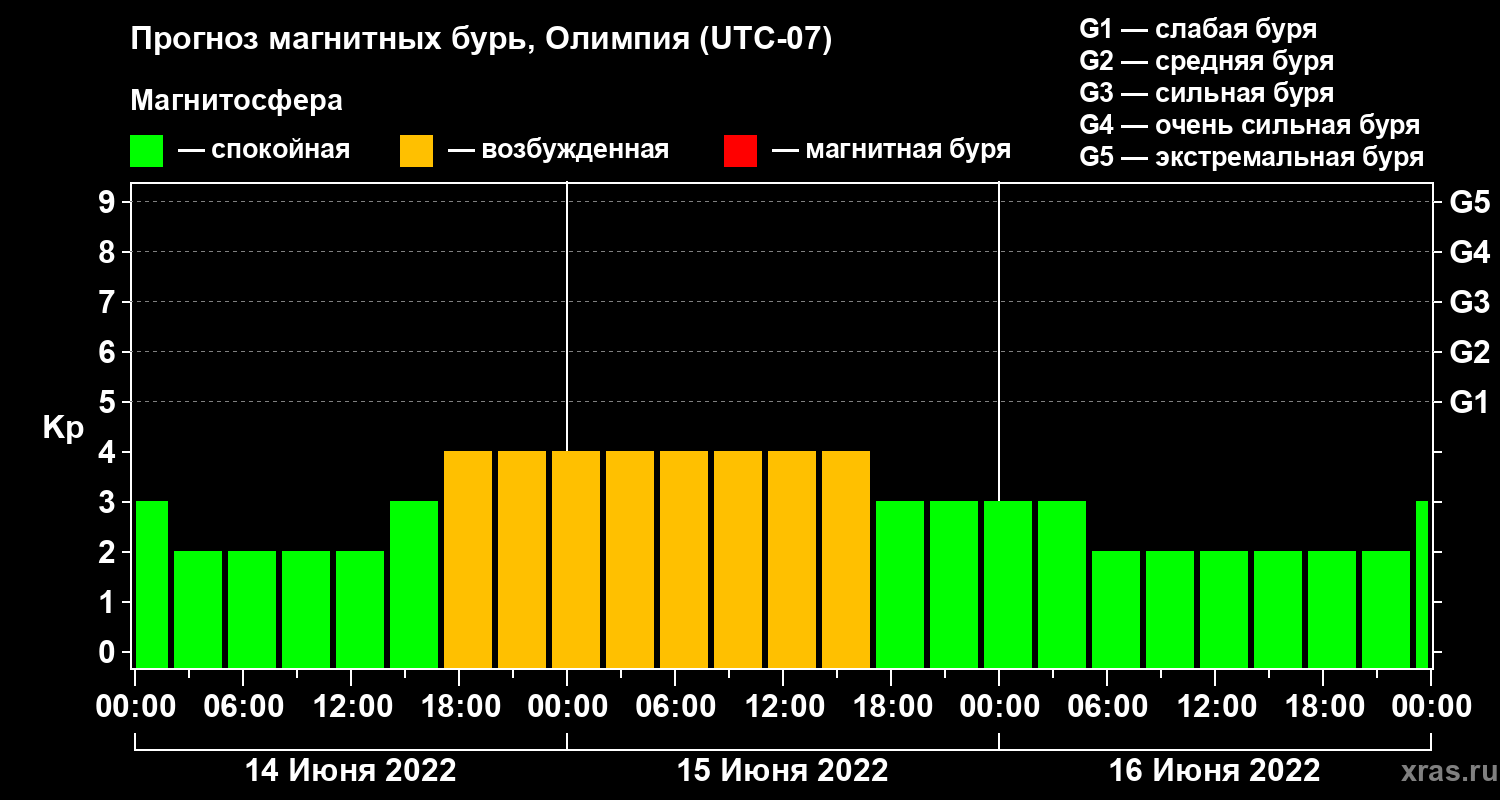 Прогноз магнитных бурь в Олимпии — 14 июня 2022 года