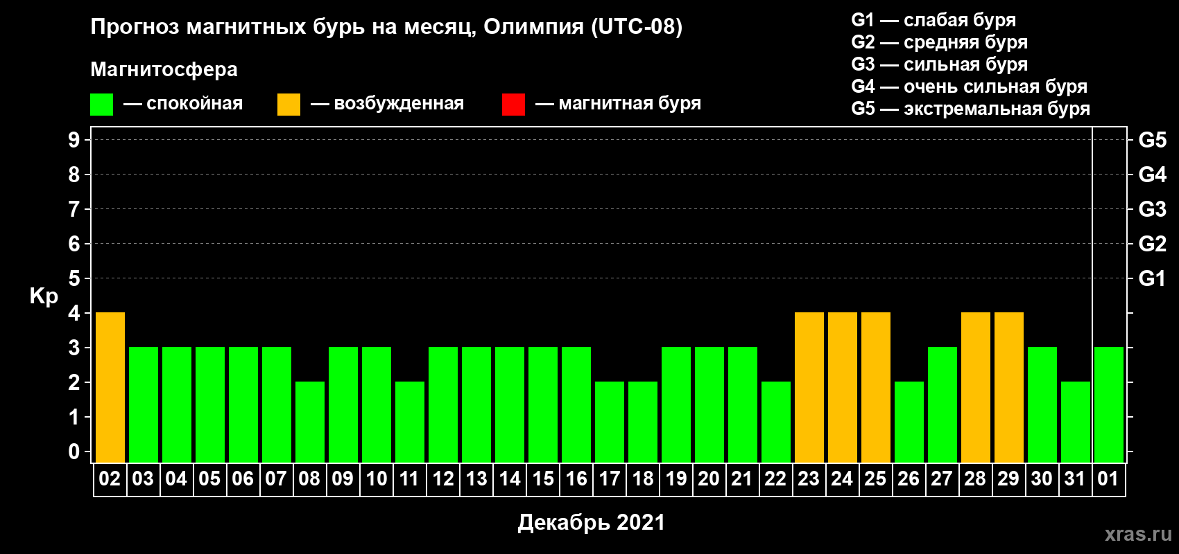 Прогноз магнитных бурь в Олимпии — 2 декабря 2021 года