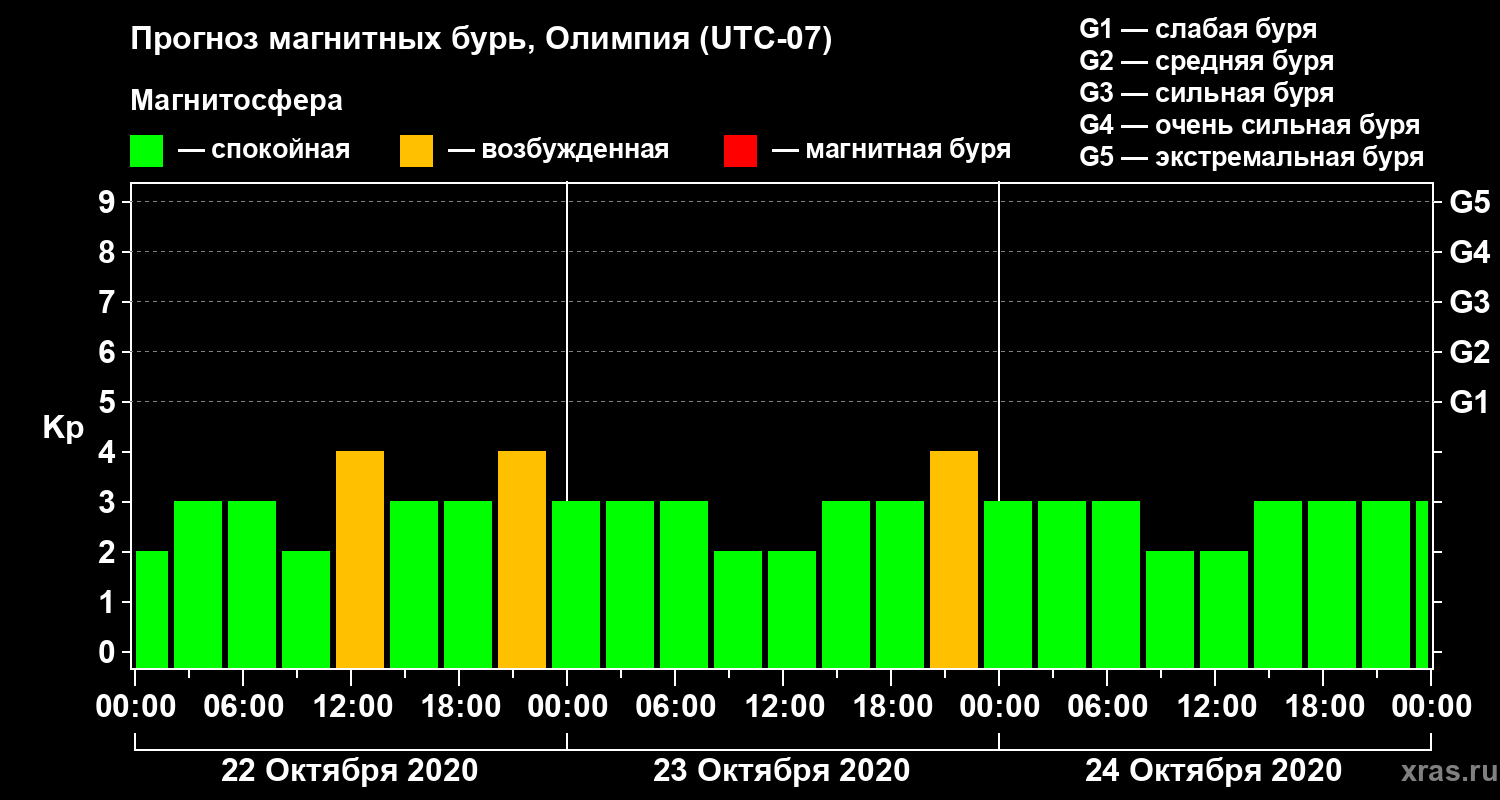 Прогноз магнитных бурь в Олимпии — 22 октября 2020 года