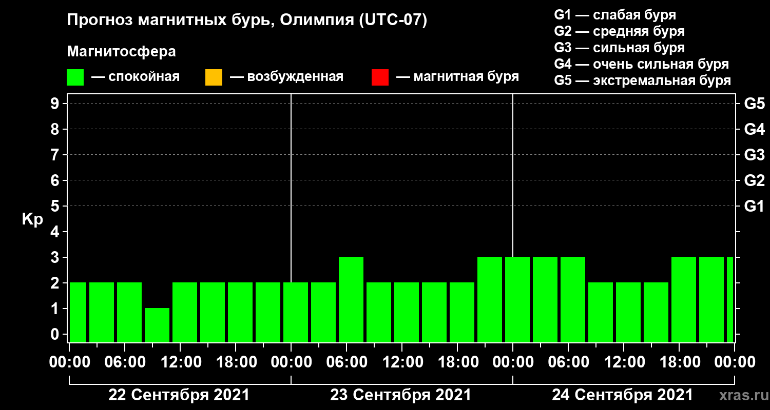 Прогноз магнитных бурь в Олимпии — 22 сентября 2021 года