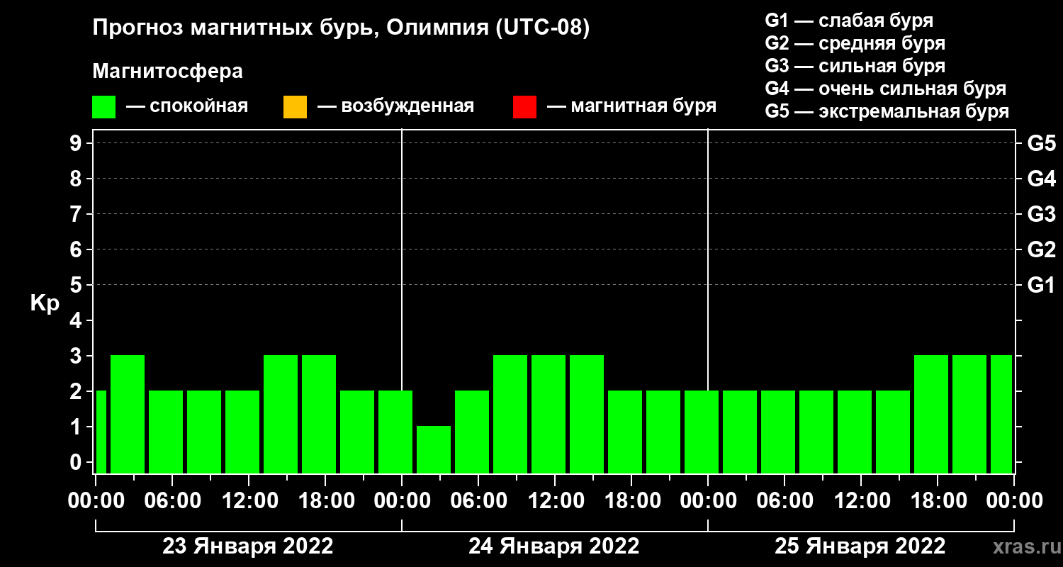 Прогноз магнитных бурь в Олимпии — 23 января 2022 года