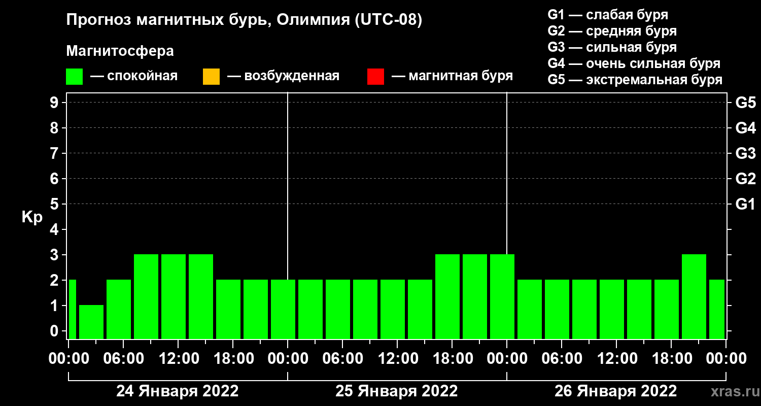 Прогноз магнитных бурь в Олимпии — 24 января 2022 года