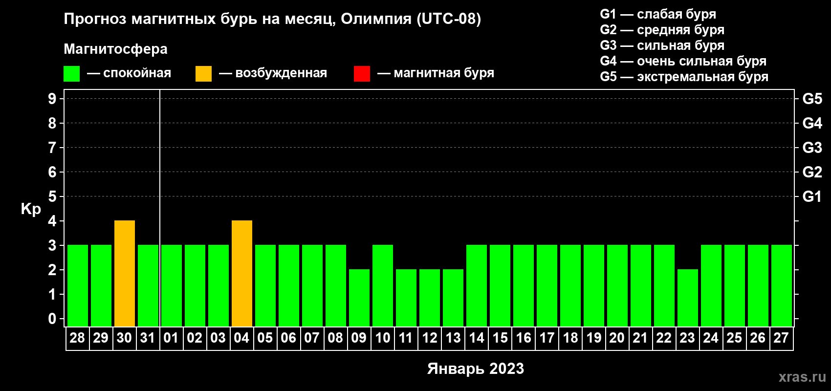 Прогноз магнитных бурь в Олимпии — 28 декабря 2022 года