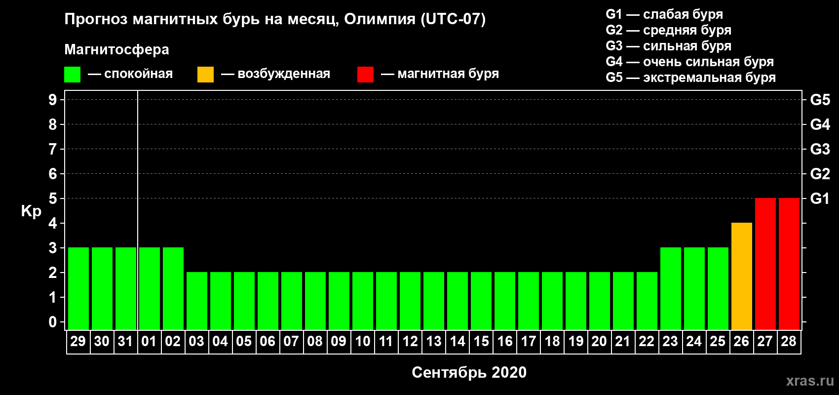 Прогноз магнитных бурь в Олимпии — 29 августа 2020 года
