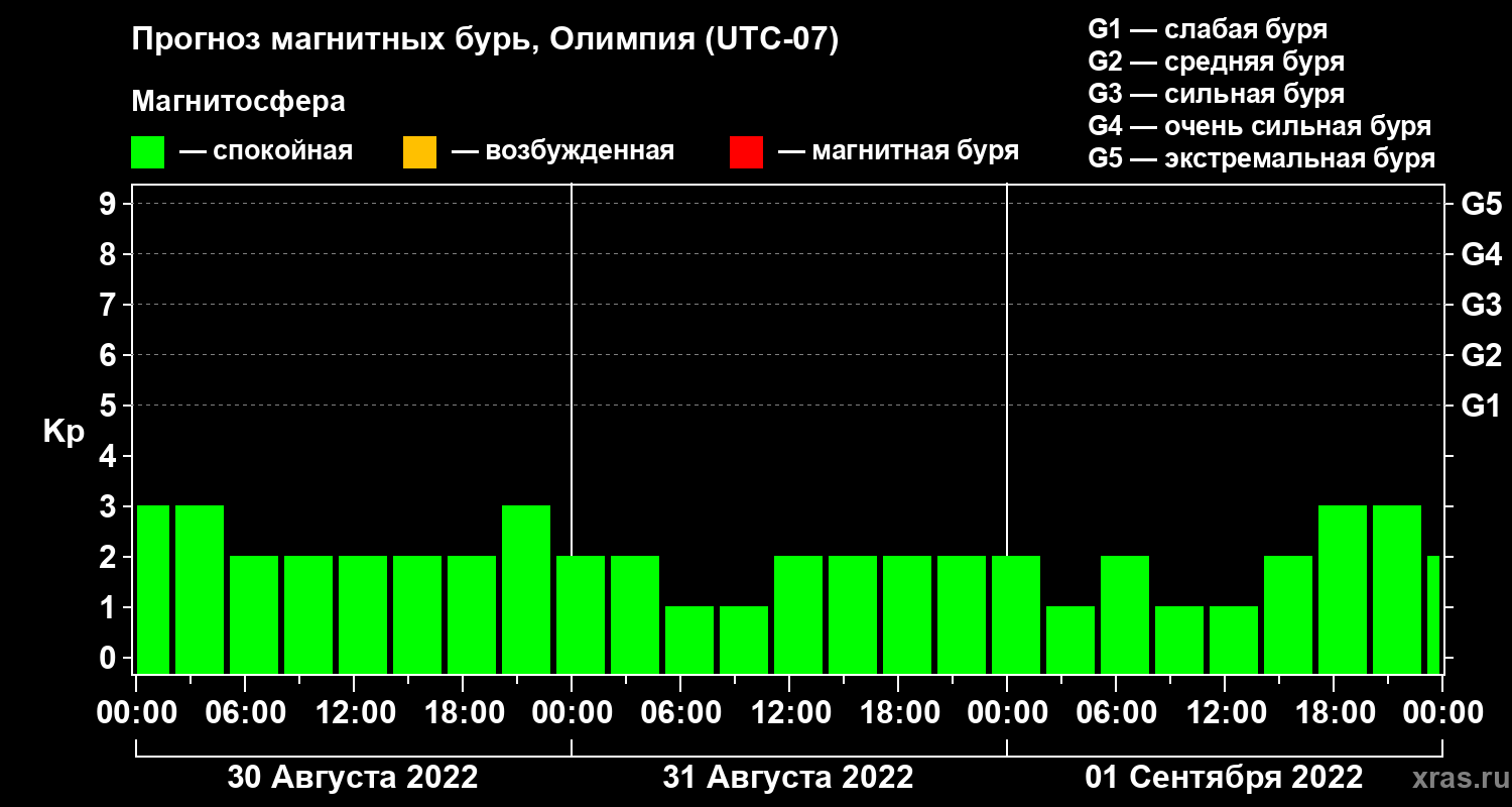 Прогноз магнитных бурь в Олимпии — 30 августа 2022 года