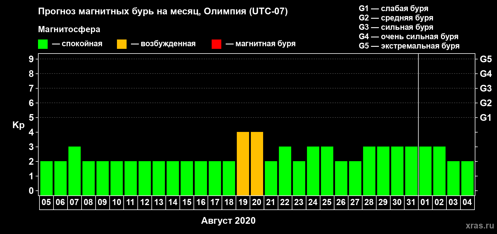Прогноз магнитных бурь в Олимпии — 5 августа 2020 года