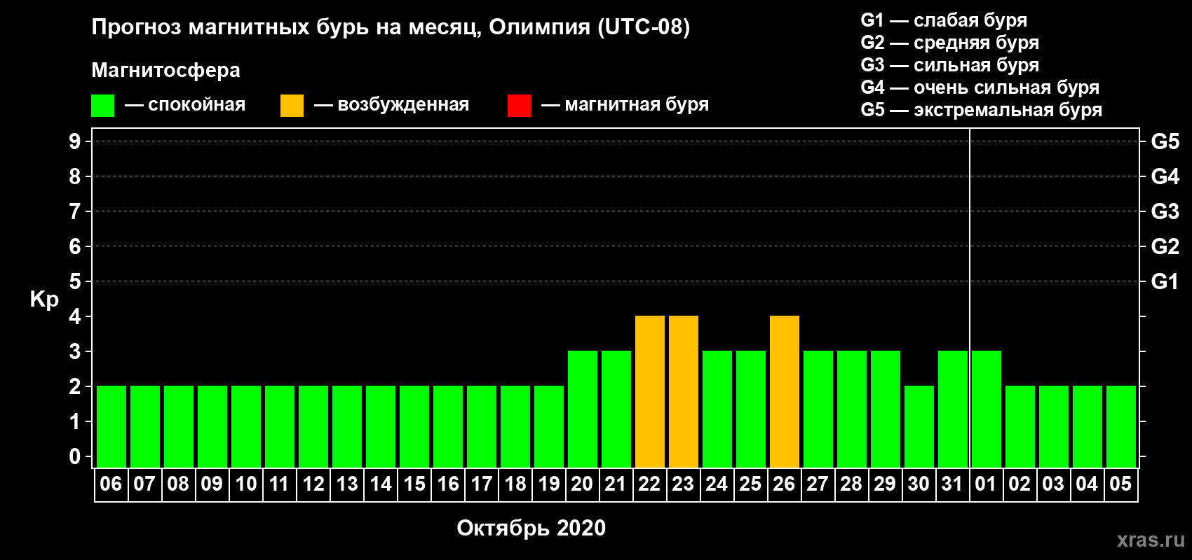 Прогноз магнитных бурь в Олимпии — 6 октября 2020 года