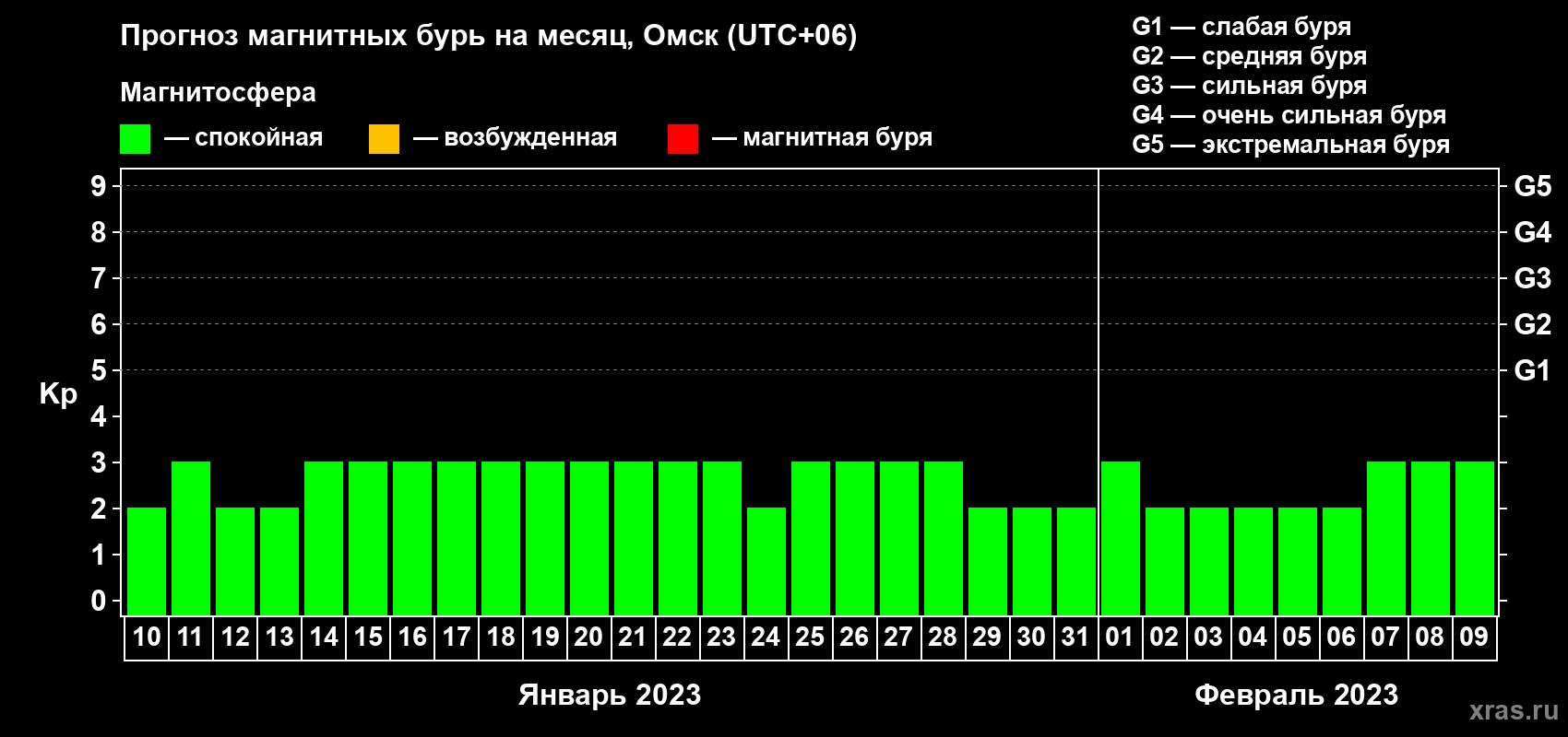 Прогноз магнитных бурь в Омске — 10 января 2023 года