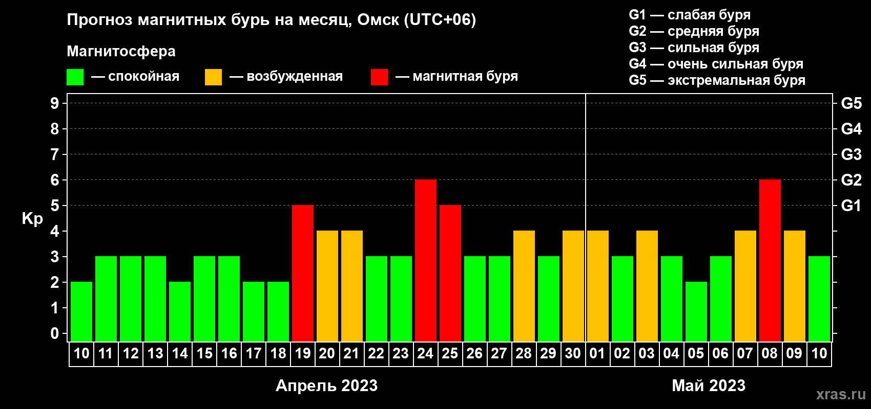Прогноз магнитных бурь в Омске — 10 апреля 2023 года