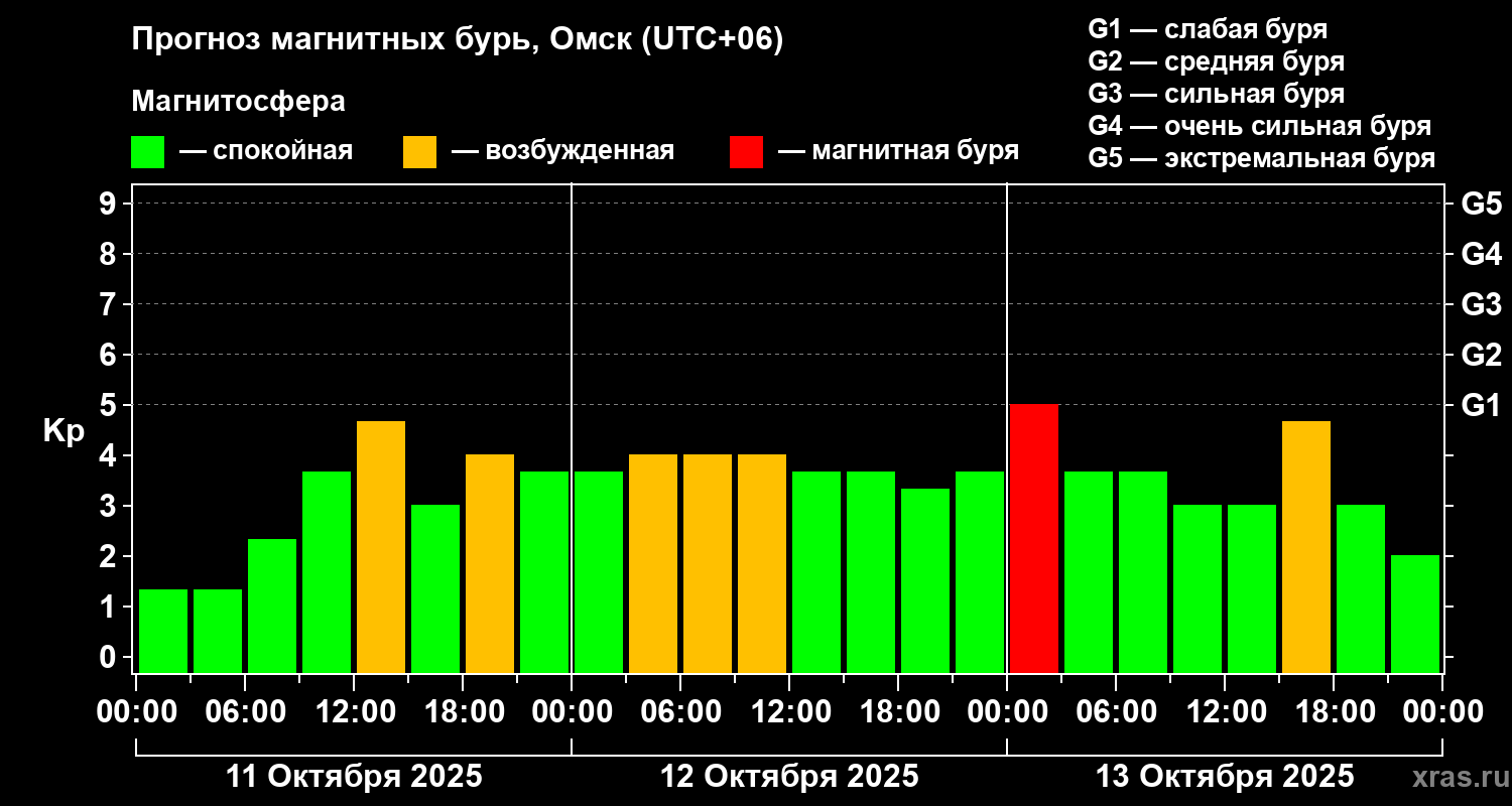 Прогноз магнитных бурь в Омске — 11 октября 2025 года