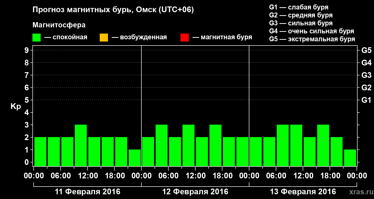 Прогноз магнитных бурь в Омске — 11 февраля 2016 года