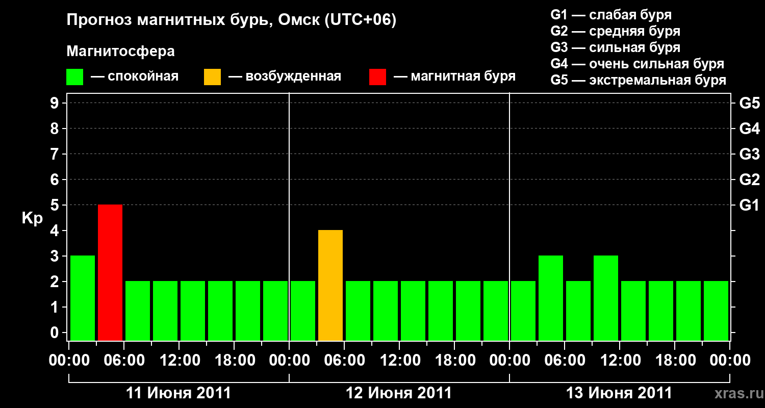 Прогноз магнитных бурь в Омске — 11 июня 2011 года