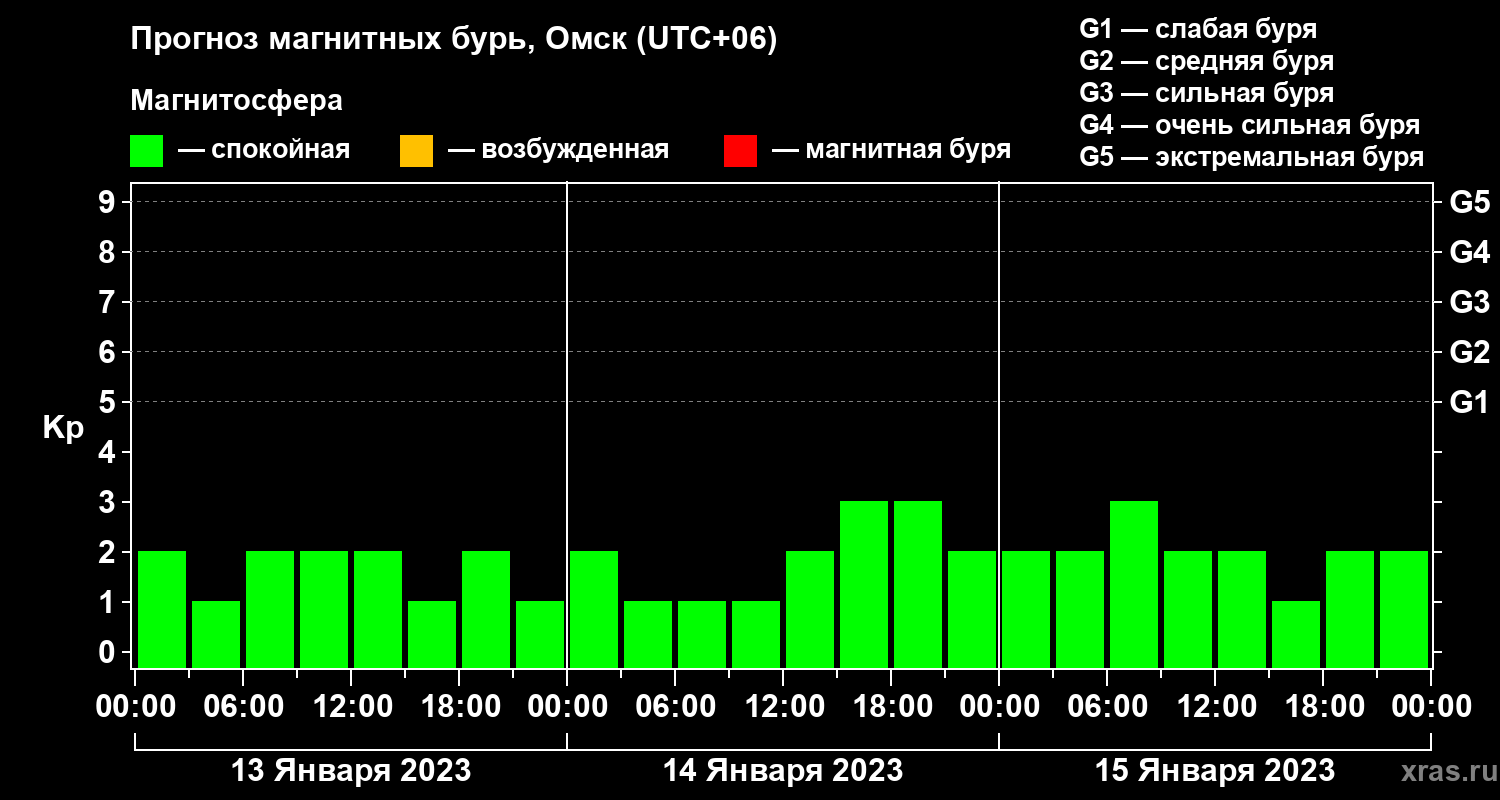 Прогноз магнитных бурь в Омске на 13 января 2023 года