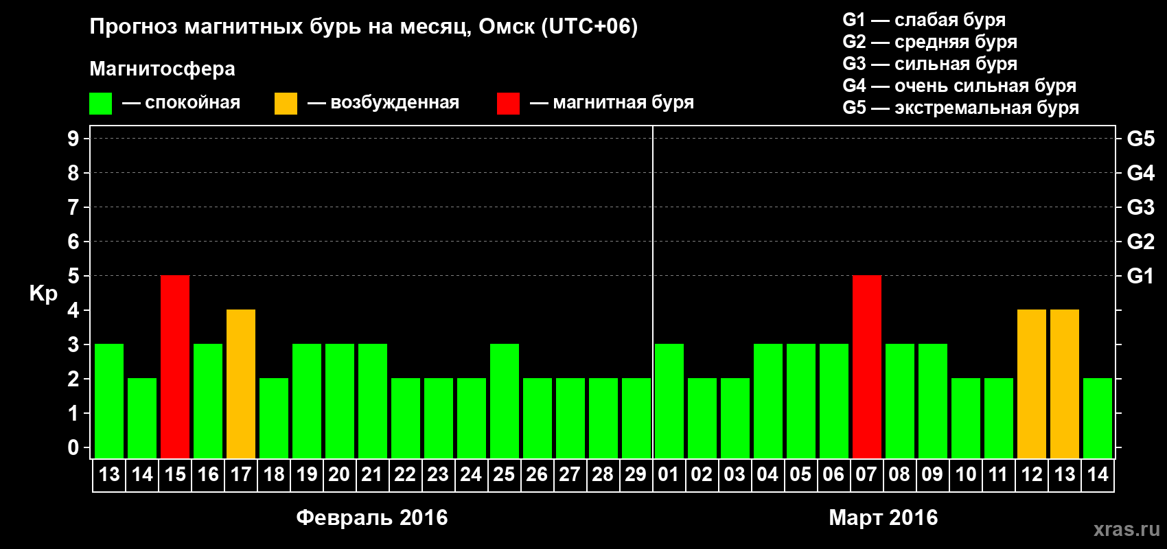 Прогноз магнитных бурь в Омске — 13 февраля 2016 года