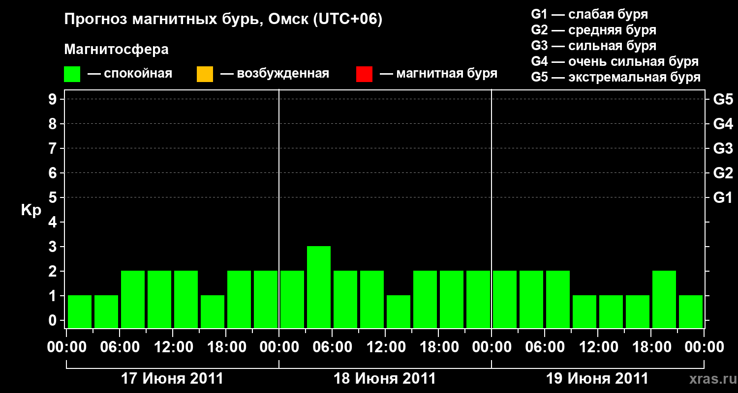 Прогноз магнитных бурь в Омске — 17 июня 2011 года