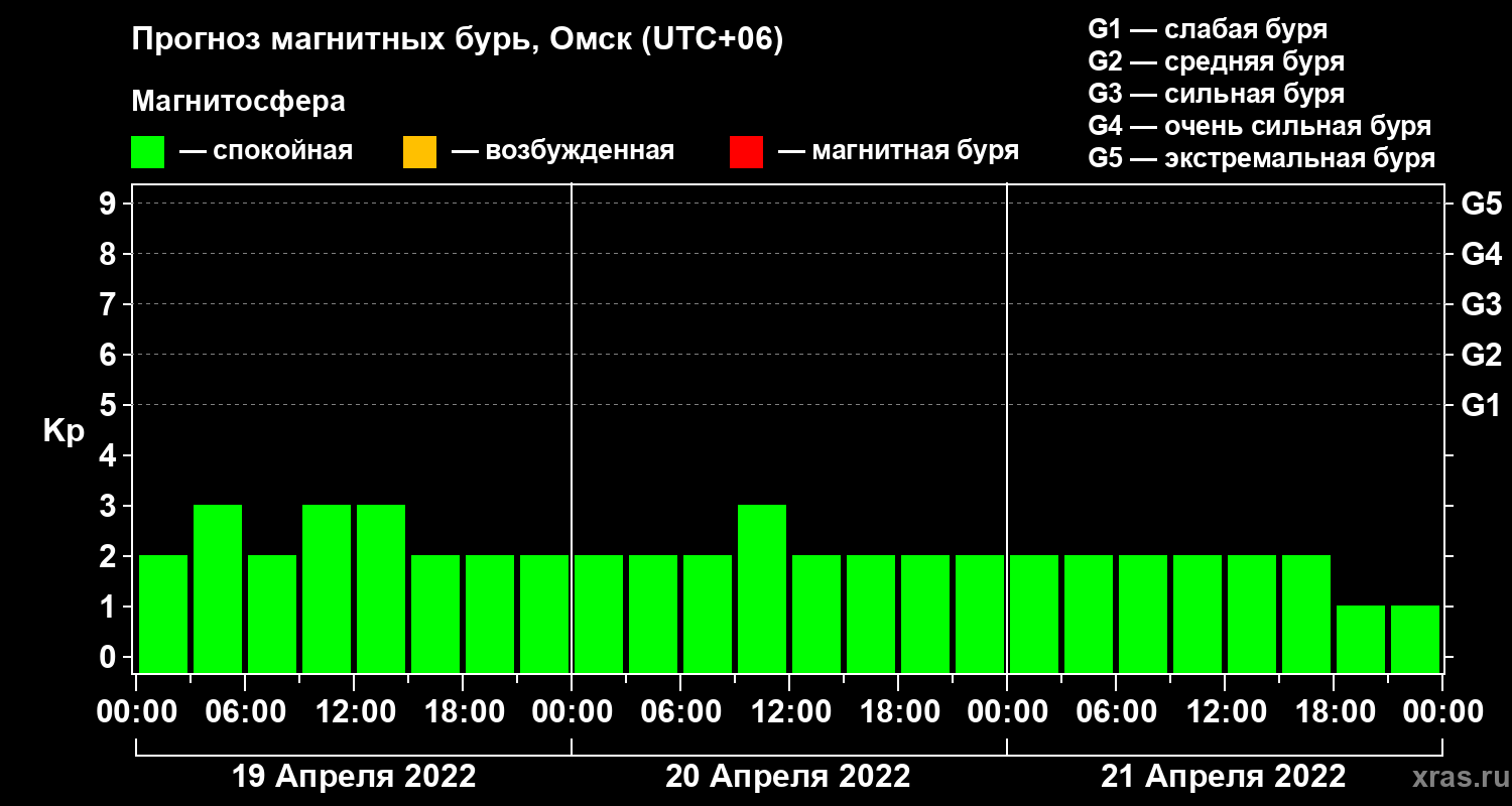 Прогноз магнитных бурь в Омске — 19 апреля 2022 года