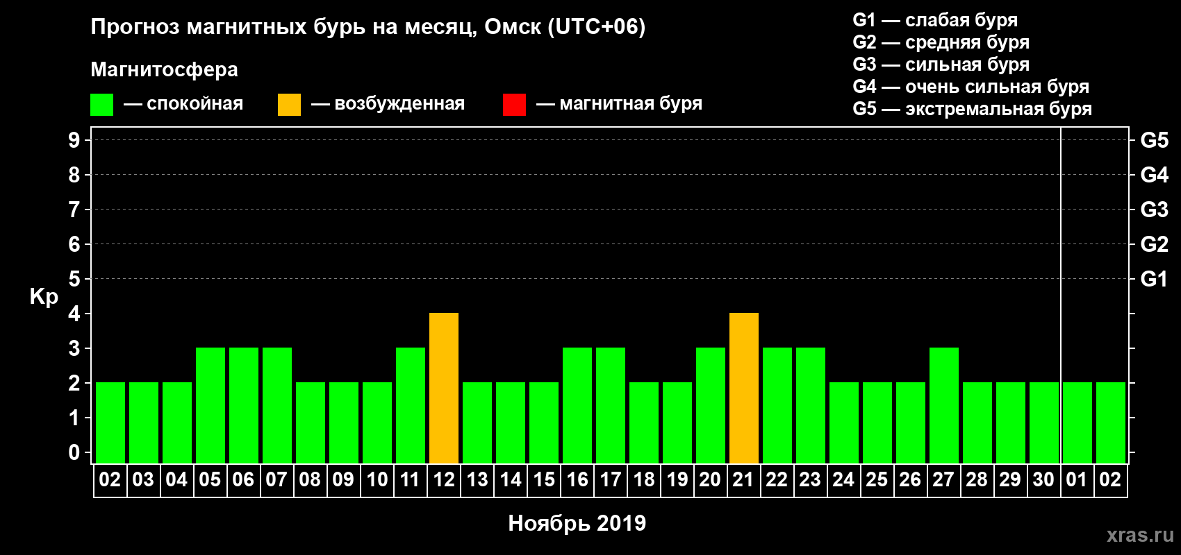 Прогноз магнитных бурь в Омске — 2 ноября 2019 года