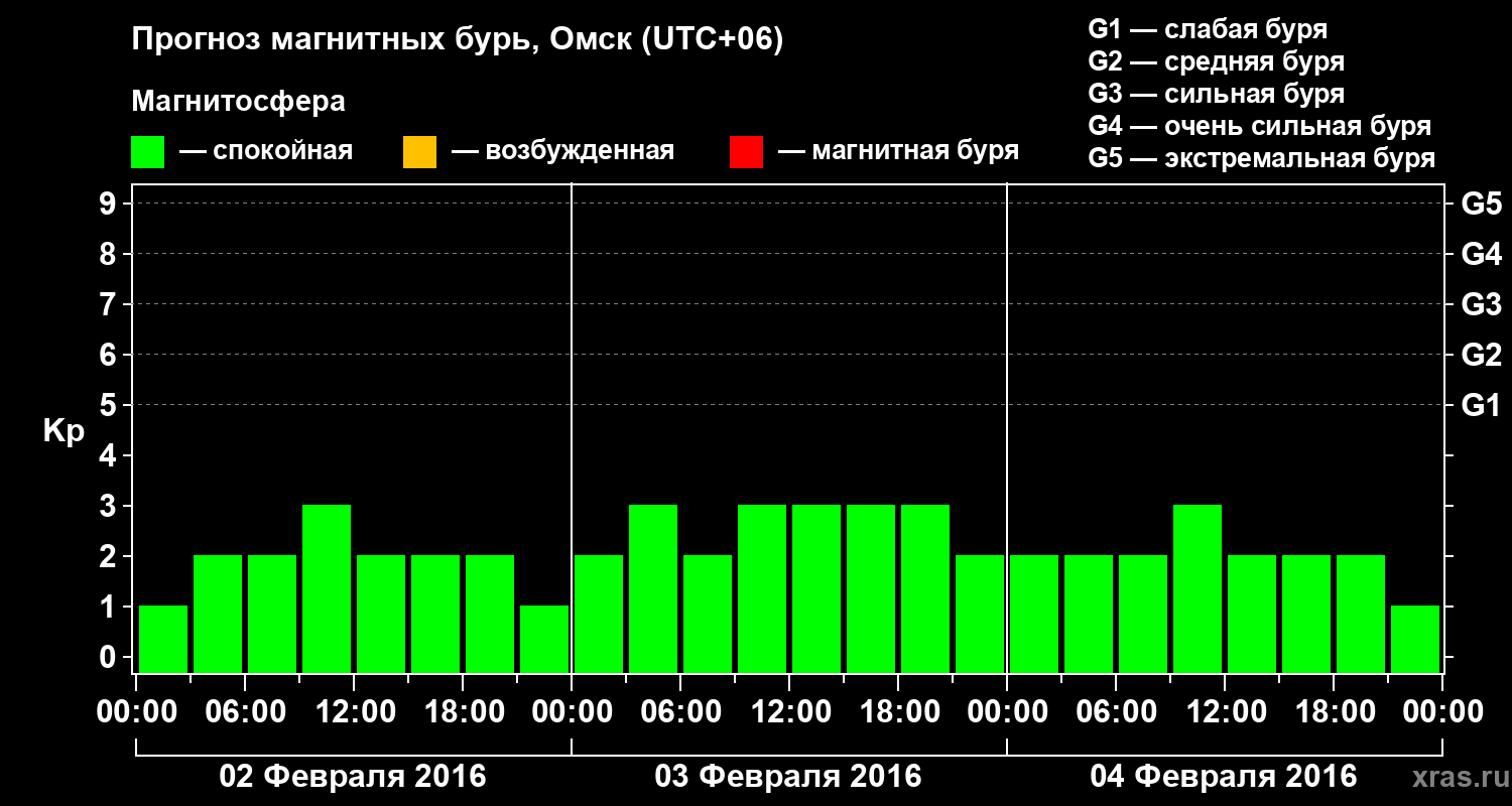 Прогноз магнитных бурь в Омске — 2 февраля 2016 года