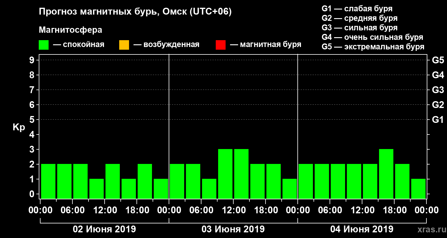 Прогноз магнитных бурь в Омске на 2 июня 2019 года