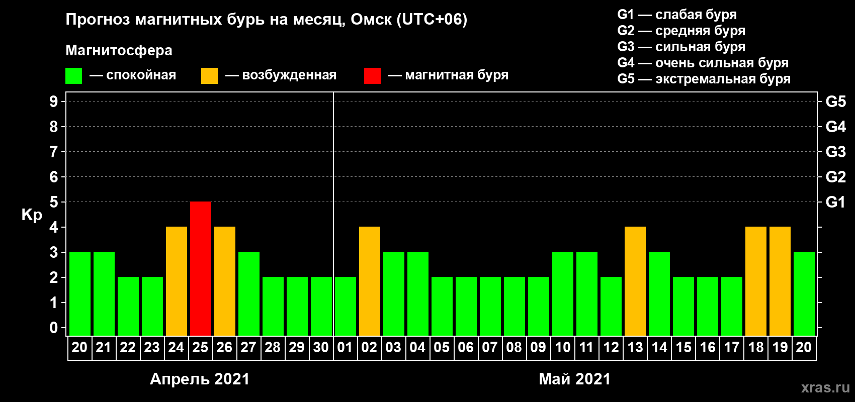 Прогноз магнитных бурь в Омске на 20 апреля 2021 года