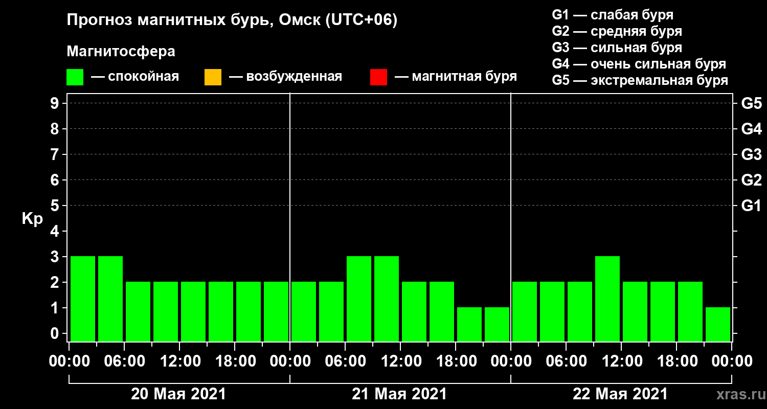 Прогноз магнитных бурь в Омске — 20 мая 2021 года