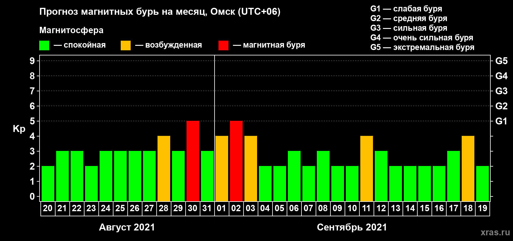 Прогноз магнитных бурь в Омске — 20 августа 2021 года