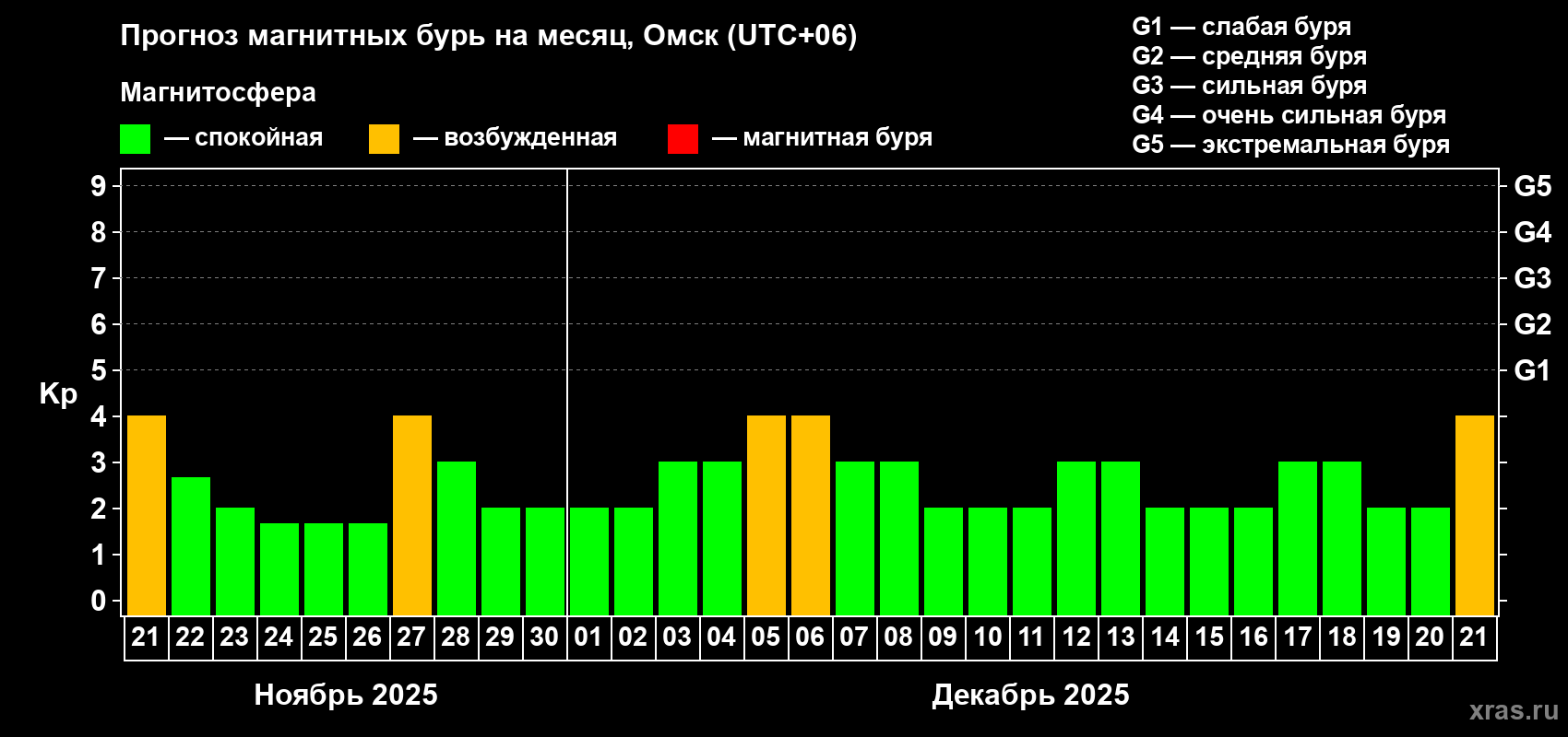 Прогноз магнитных бурь в Омске — 21 ноября 2025 года