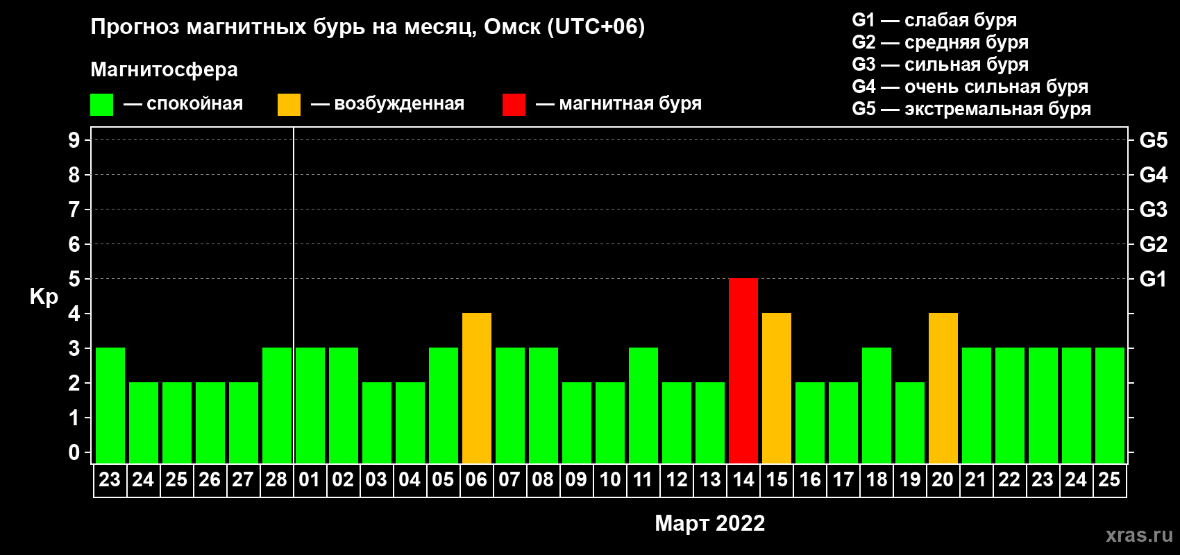 Прогноз магнитных бурь в Омске — 23 февраля 2022 года