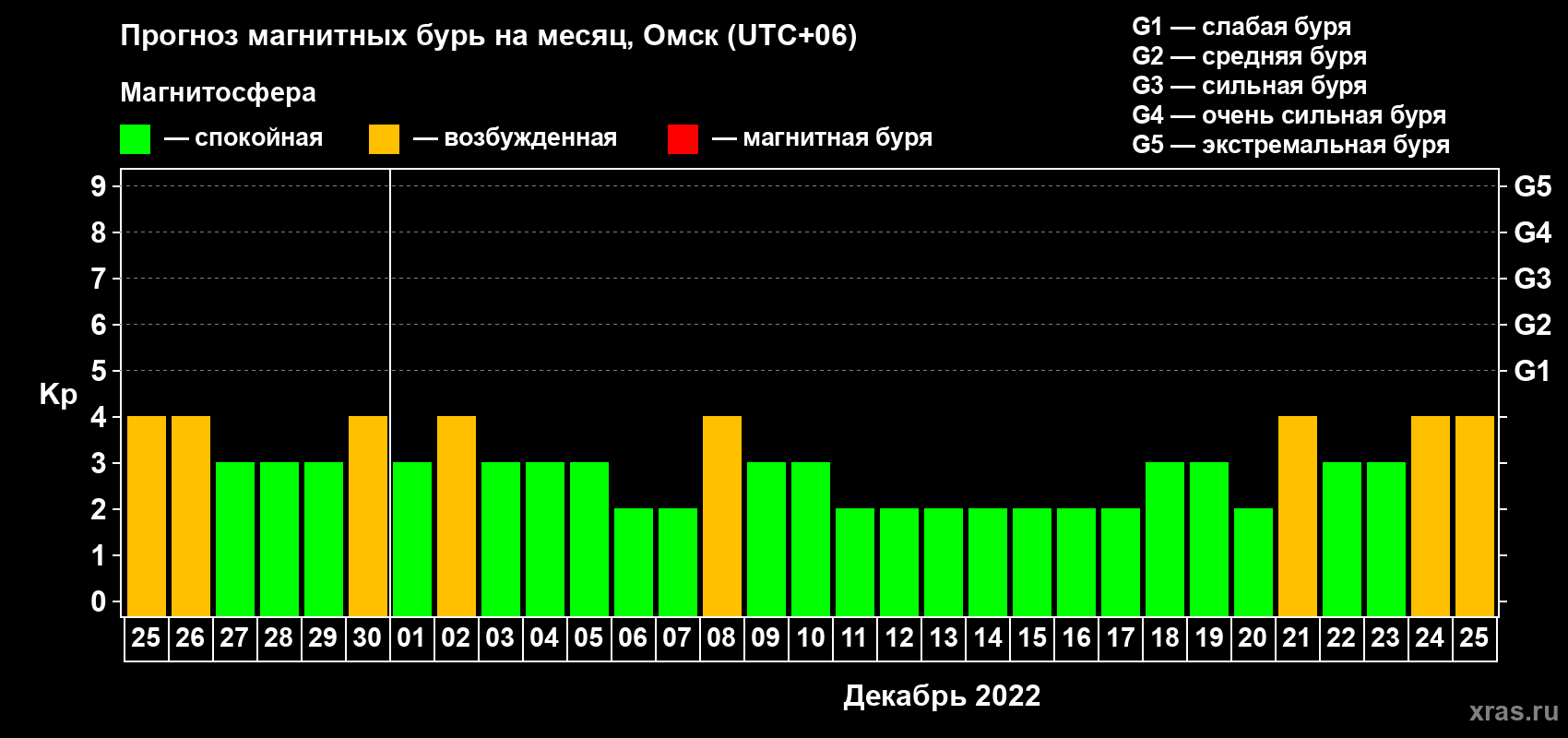 Прогноз магнитных бурь в Омске — 25 ноября 2022 года