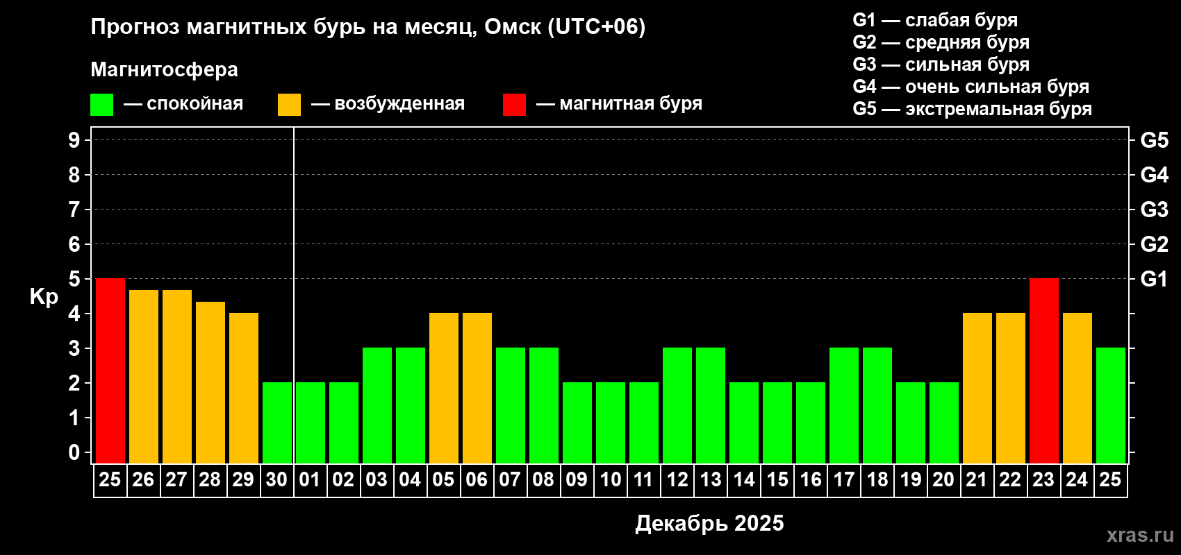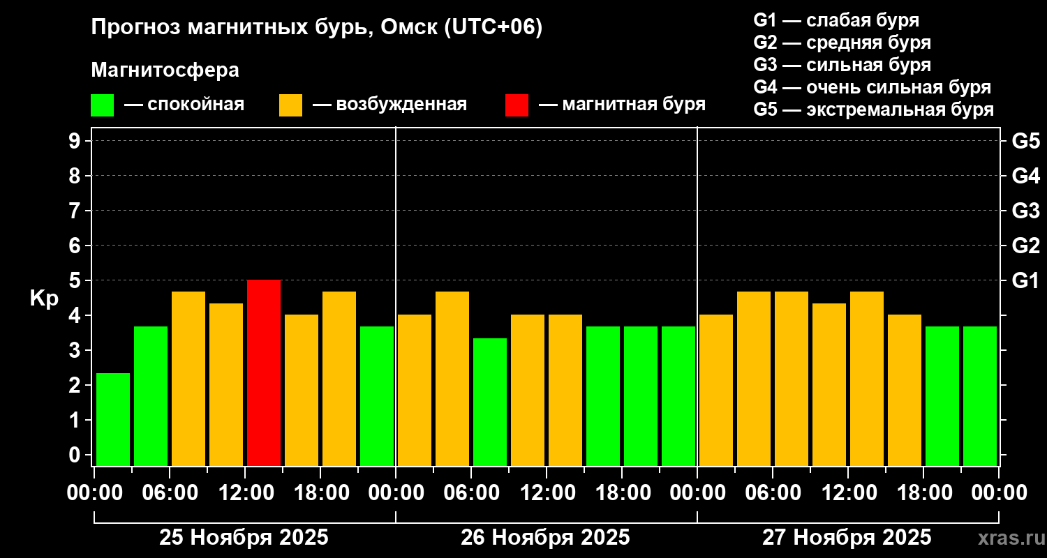Прогноз магнитных бурь в Омске — 25 ноября 2025 года