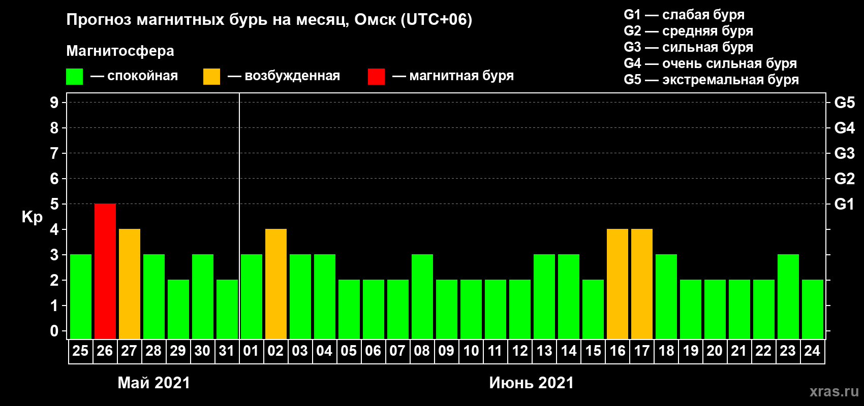 Прогноз магнитных бурь в Омске — 25 мая 2021 года
