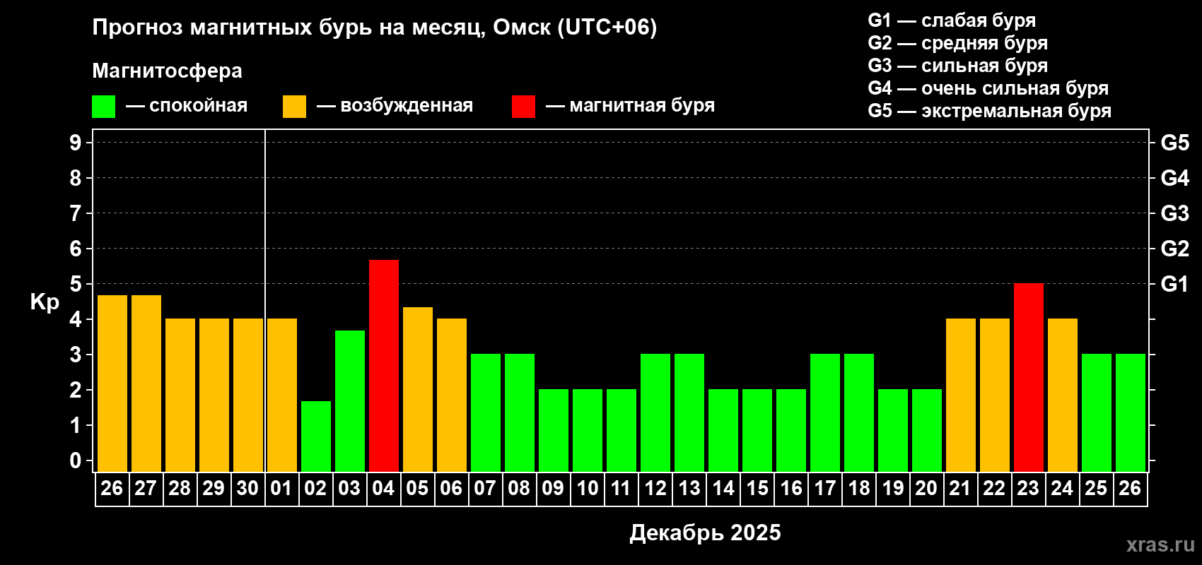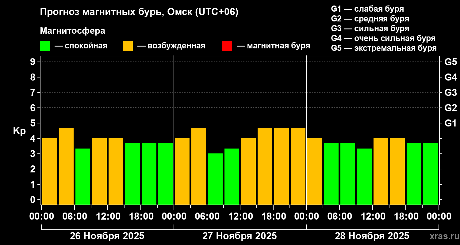 Прогноз магнитных бурь в Омске на 26 ноября 2025 года