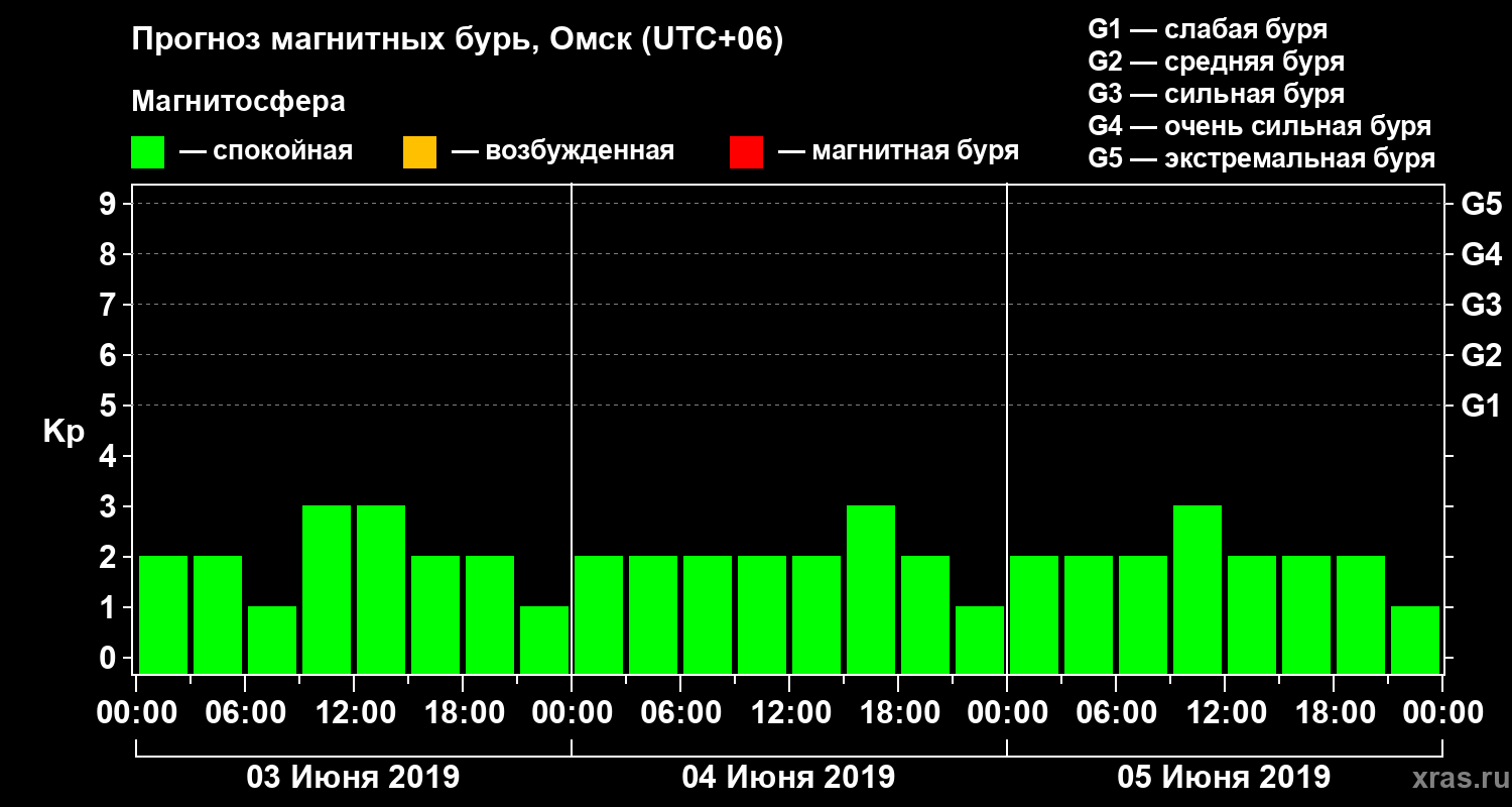 Прогноз магнитных бурь в Омске на 3 июня 2019 года