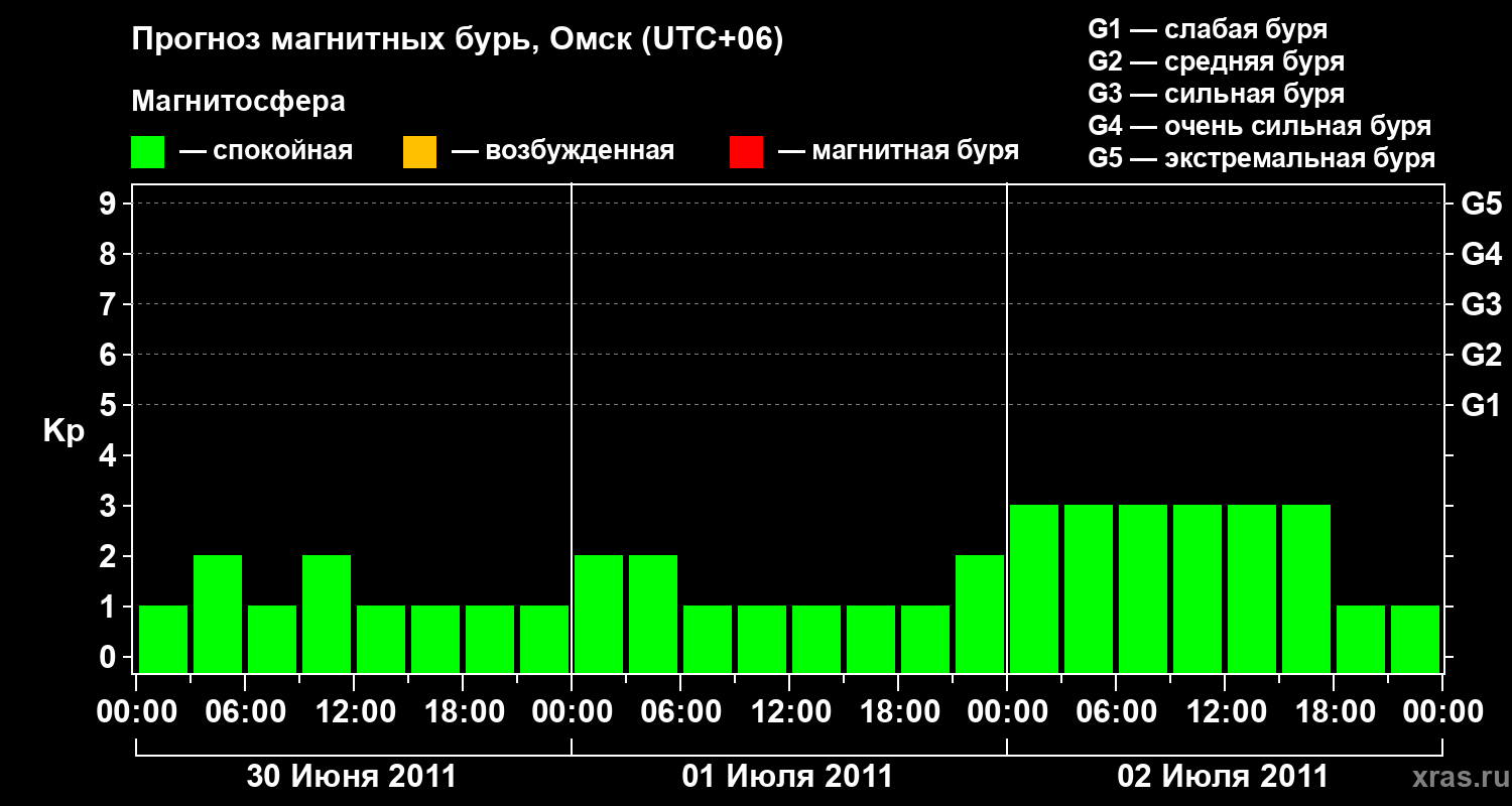 Прогноз магнитных бурь в Омске — 30 июня 2011 года