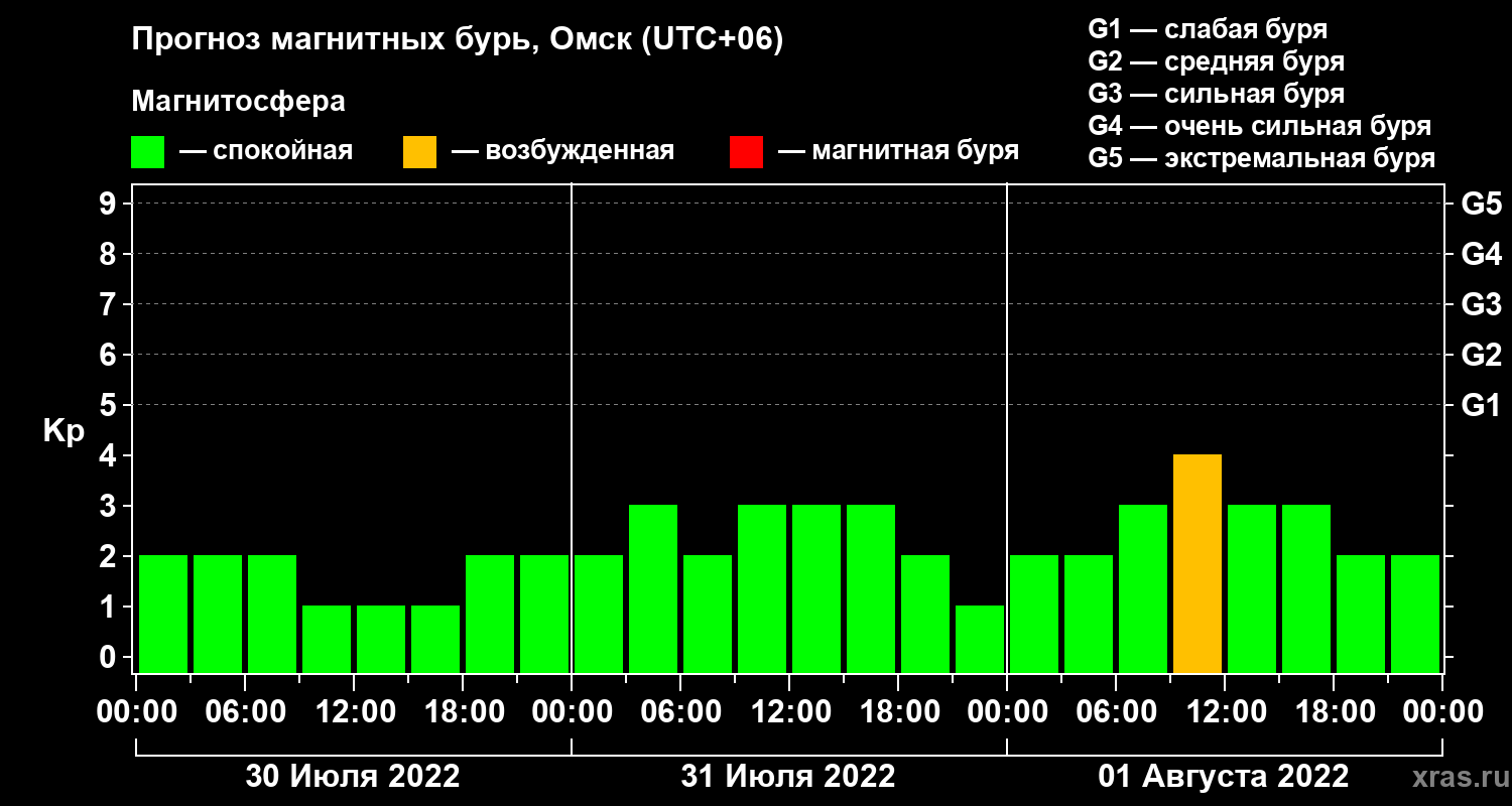 Прогноз магнитных бурь в Омске — 30 июля 2022 года