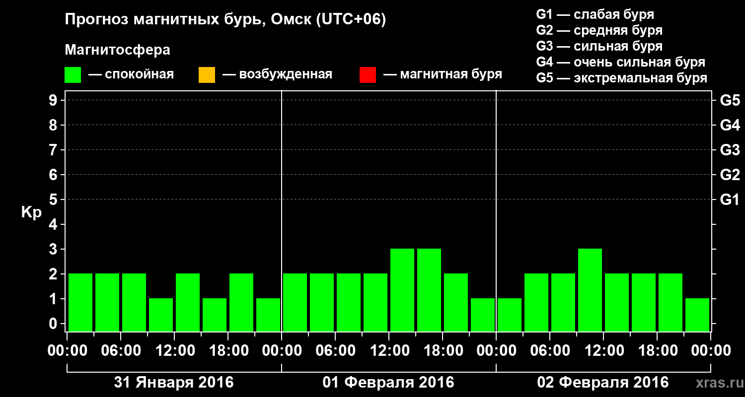 Прогноз магнитных бурь в Омске на 31 января 2016 года