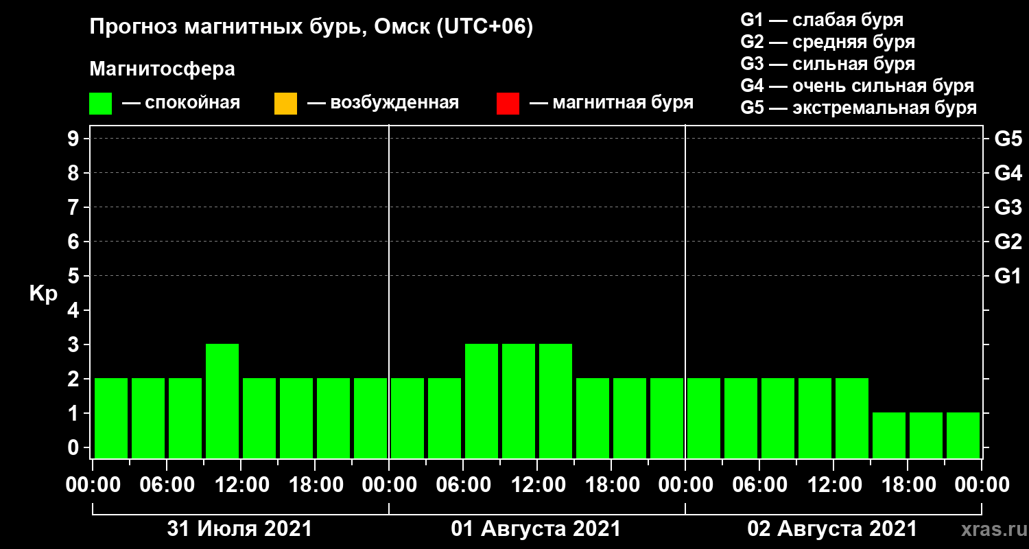 Прогноз магнитных бурь в Омске — 31 июля 2021 года