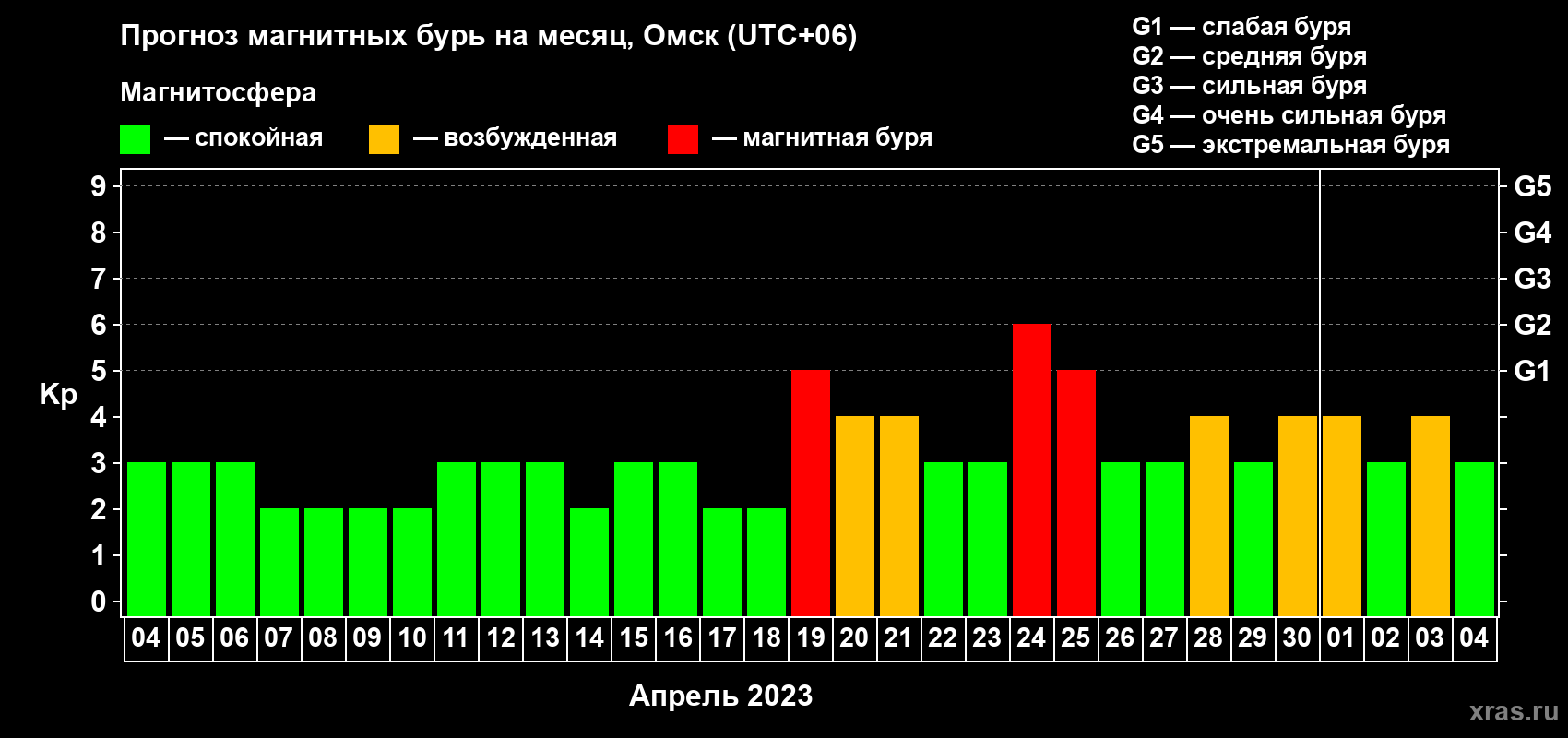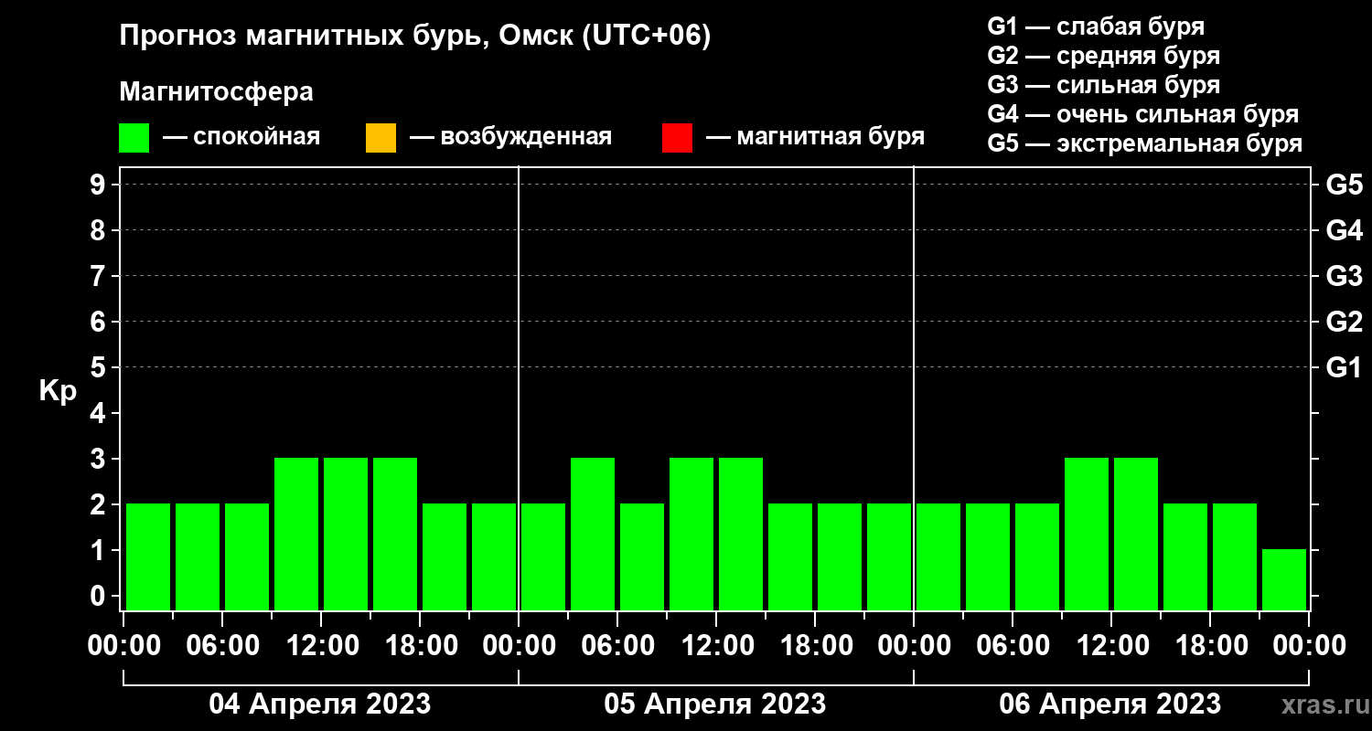 Прогноз магнитных бурь в Омске — 4 апреля 2023 года