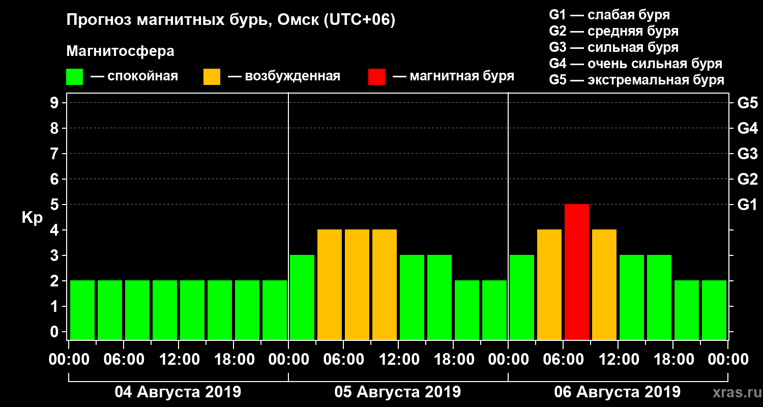 Прогноз магнитных бурь в Омске — 4 августа 2019 года