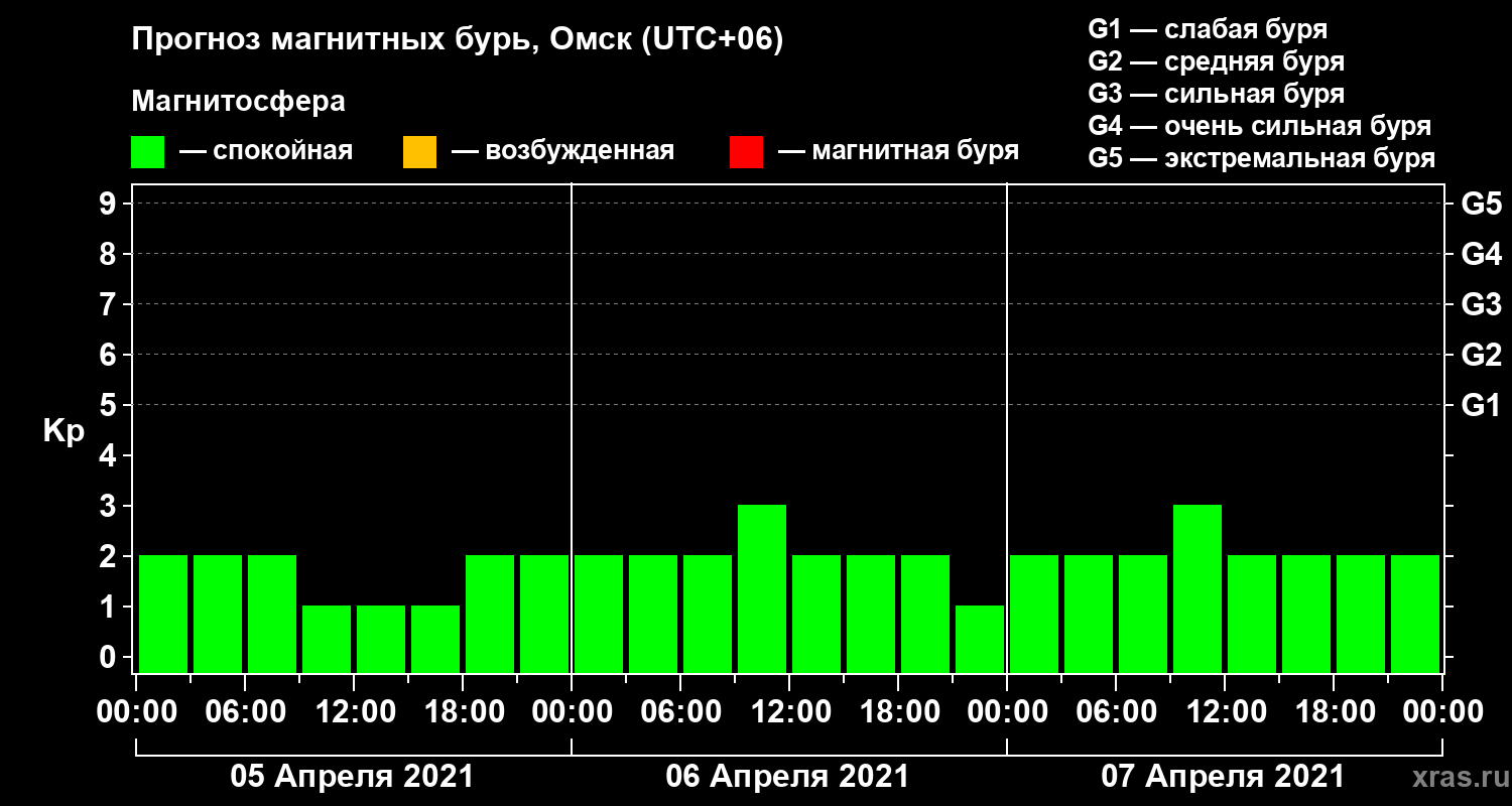 Прогноз магнитных бурь в Омске — 5 апреля 2021 года
