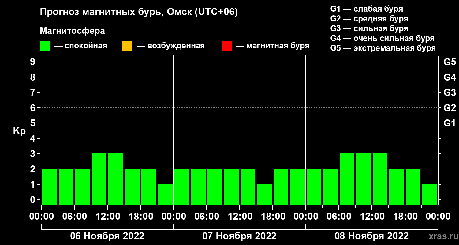 Прогноз магнитных бурь в Омске — 6 ноября 2022 года