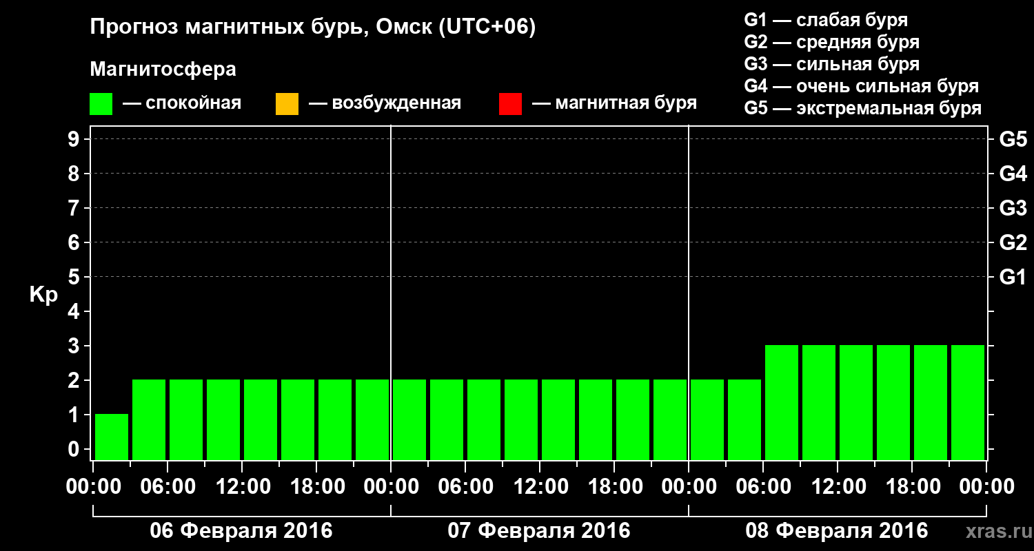 Прогноз магнитных бурь в Омске на 6 февраля 2016 года