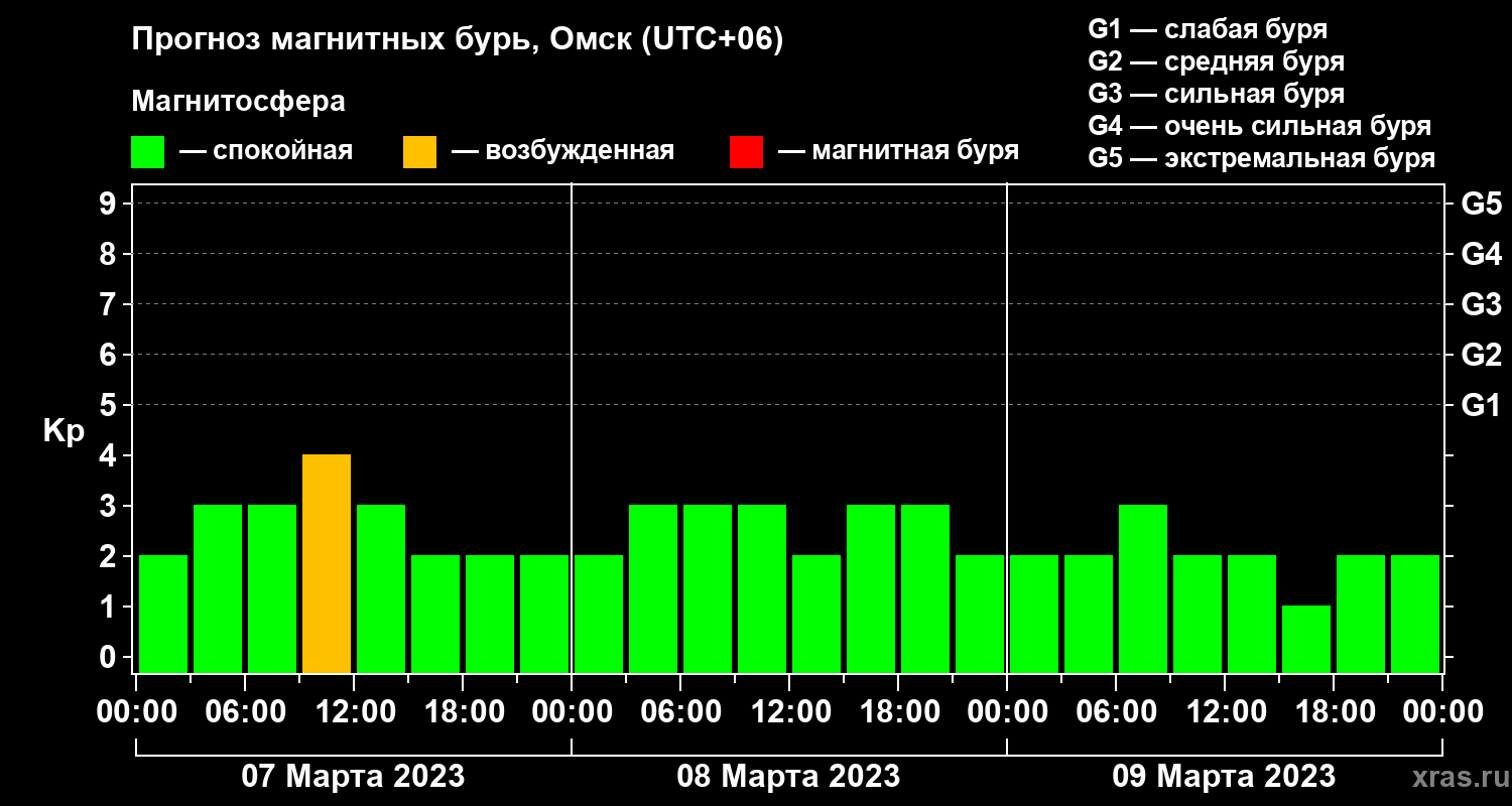 Прогноз магнитных бурь в Омске — 7 марта 2023 года