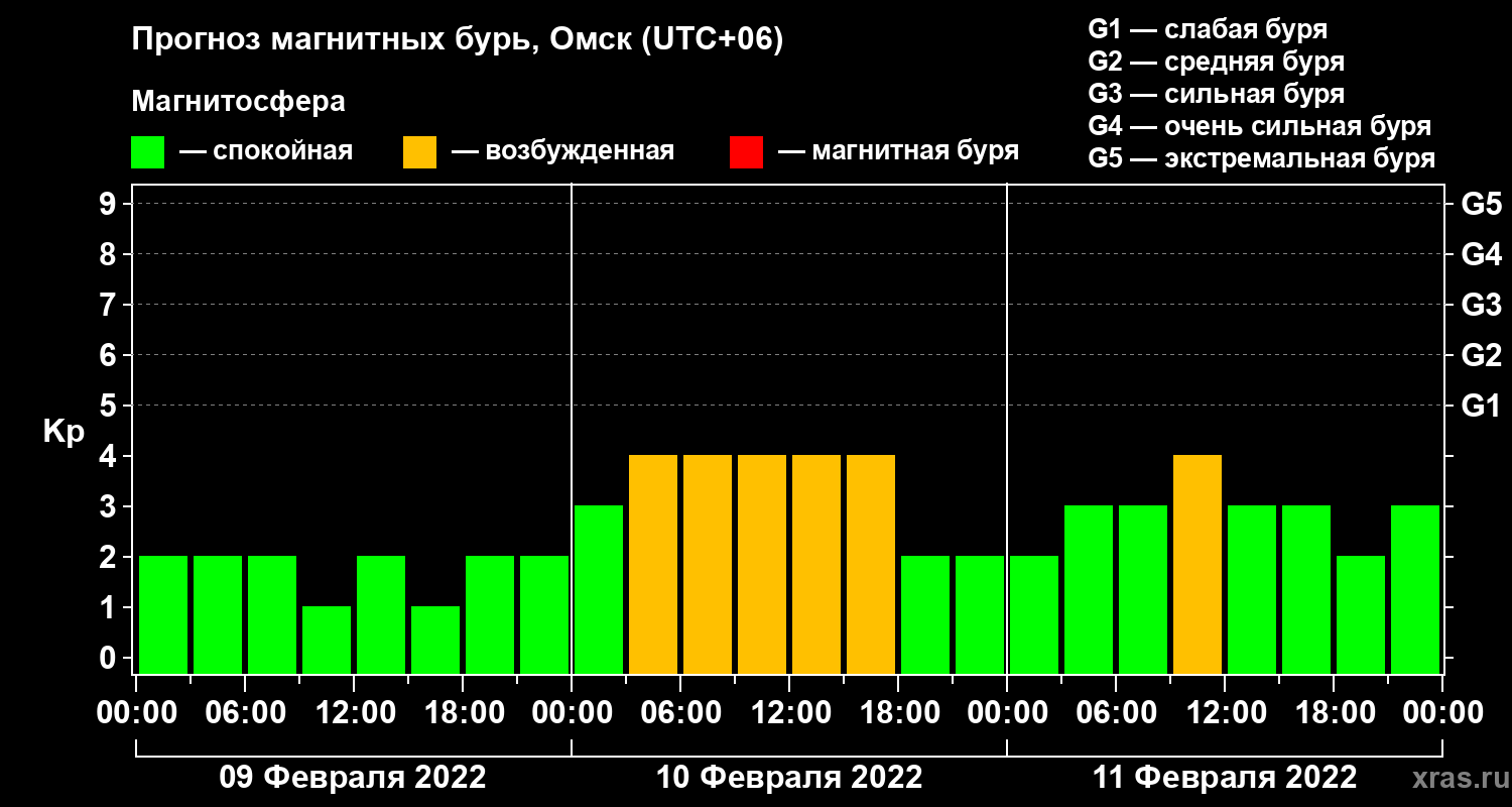 Прогноз магнитных бурь в Омске — 9 февраля 2022 года