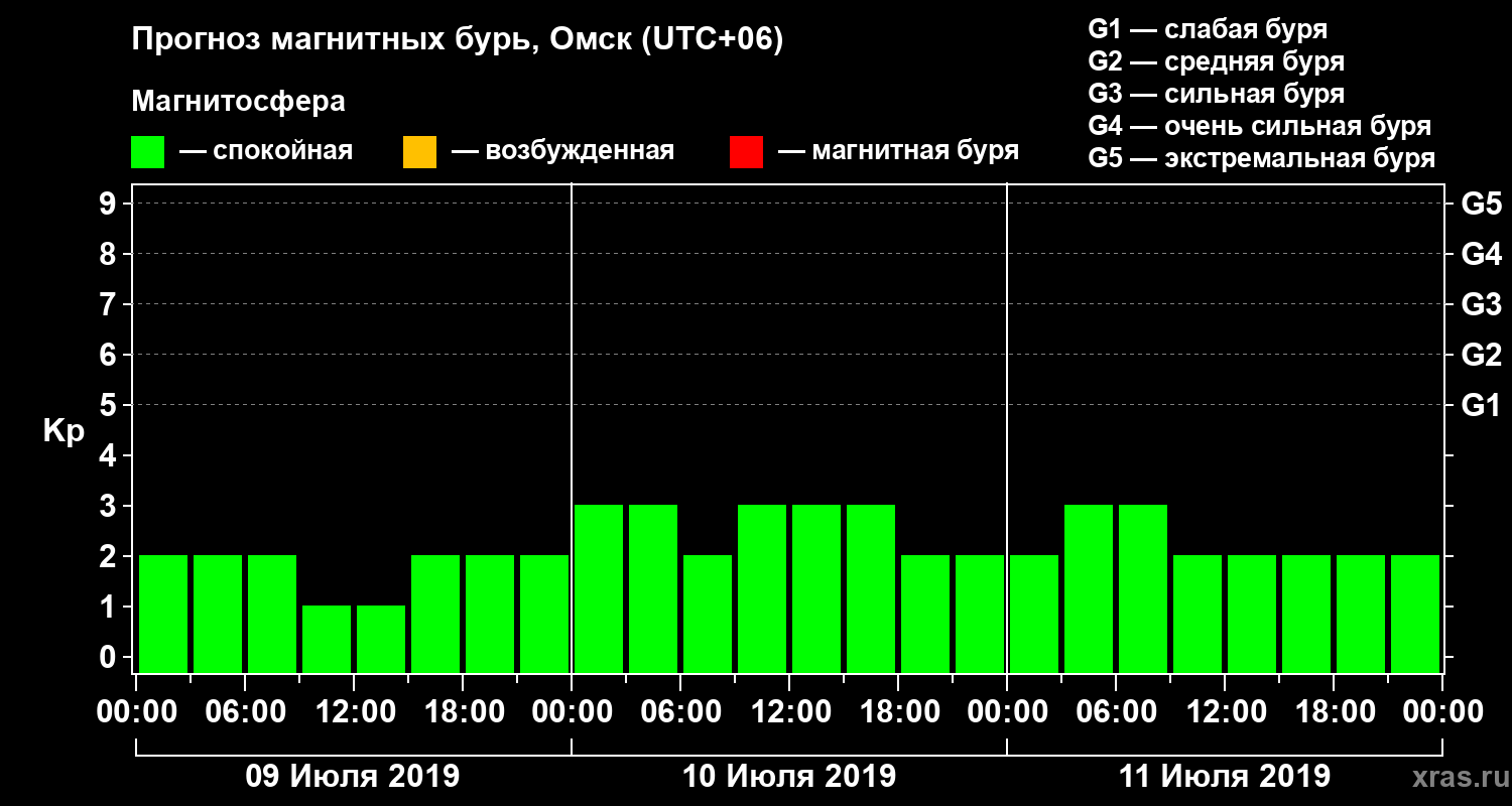Прогноз магнитных бурь в Омске — 9 июля 2019 года